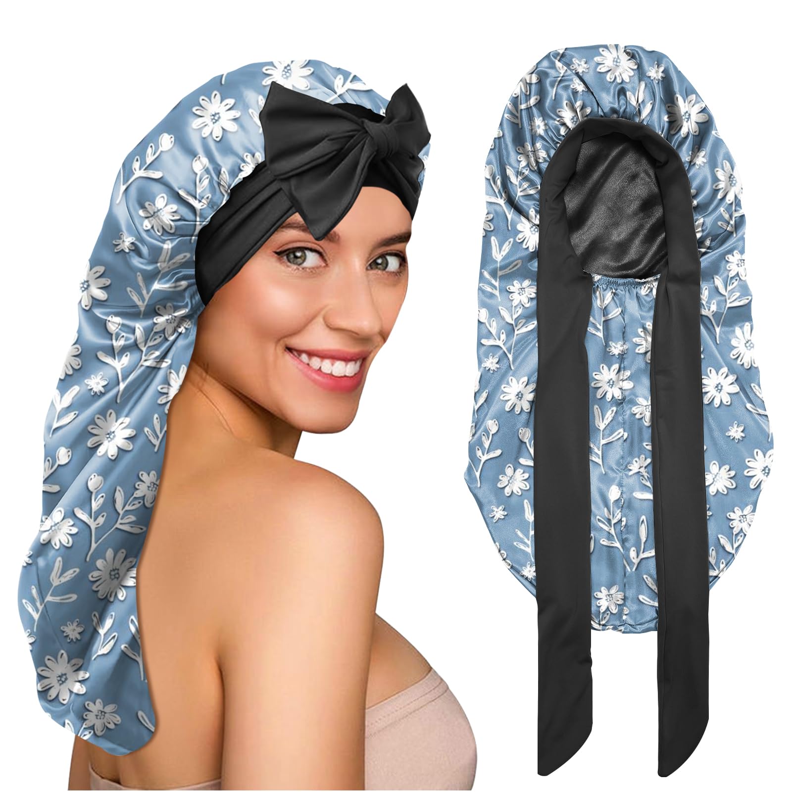 Premium-Satin für gesundes Haar: Hergestellt aus hochwertigem Satin, reduziert diese Satinhaube für langes Haar Reibung und verhindert Kräuseln. Halten Sie Ihr Haar gesund, glatt und stilvoll mit unserer langen Satin-Haarhaube für Damen. Es ist ein unverzichtbares Accessoire für schwarze Frauen, das Ihr Haar frisch und stilvoll aussehen lässt, egal welcher Stil Seidenhaube Lange Haare Lange Satin-Haube Für Damen, Haarhaube Für Damen, Schlafhaube Für Das Bonnet Mit Schleife Haube für de Mad | Rtterladen, Kopfbedeckung, Hauben Schützen Sie Ihre Zöpfe über Nacht: Diese Haube ist als geflochtene Haube konzipiert und bietet volle Abdeckung für Zöpfe, Verdrehungen und Verlängerungen. Bequeme und sichere Passform: Mit einem verstellbaren Gummiband bietet diese Haube eine gute Passform für alle Haartypen. Entwickelt, um lange Haare, Zöpfe und Frisuren zu schützen. Es ist auch ideal als Seidenhaube, hält Ihr Haar glatt, hydratisiert und gesund Diese 2-lagige Haube ist aus hochwertigem Satin hergestellt, um Reibung zu reduzieren, Frizz zu verhindern und Feuchtigkeit einzuschließen, während Sie schlafen, duschen oder entspannen. 2 Stück Satin Haarhaube Bonnet - Schlafhaube Seidige Satinhaube für Haarpflege: Die Schlafhaube schützt das Haar maximal, hält das Haar vor Verknoten. Es kann auch die Feuchtigkeit des Haares versiegeln und den brillanten Glanz erhöhen