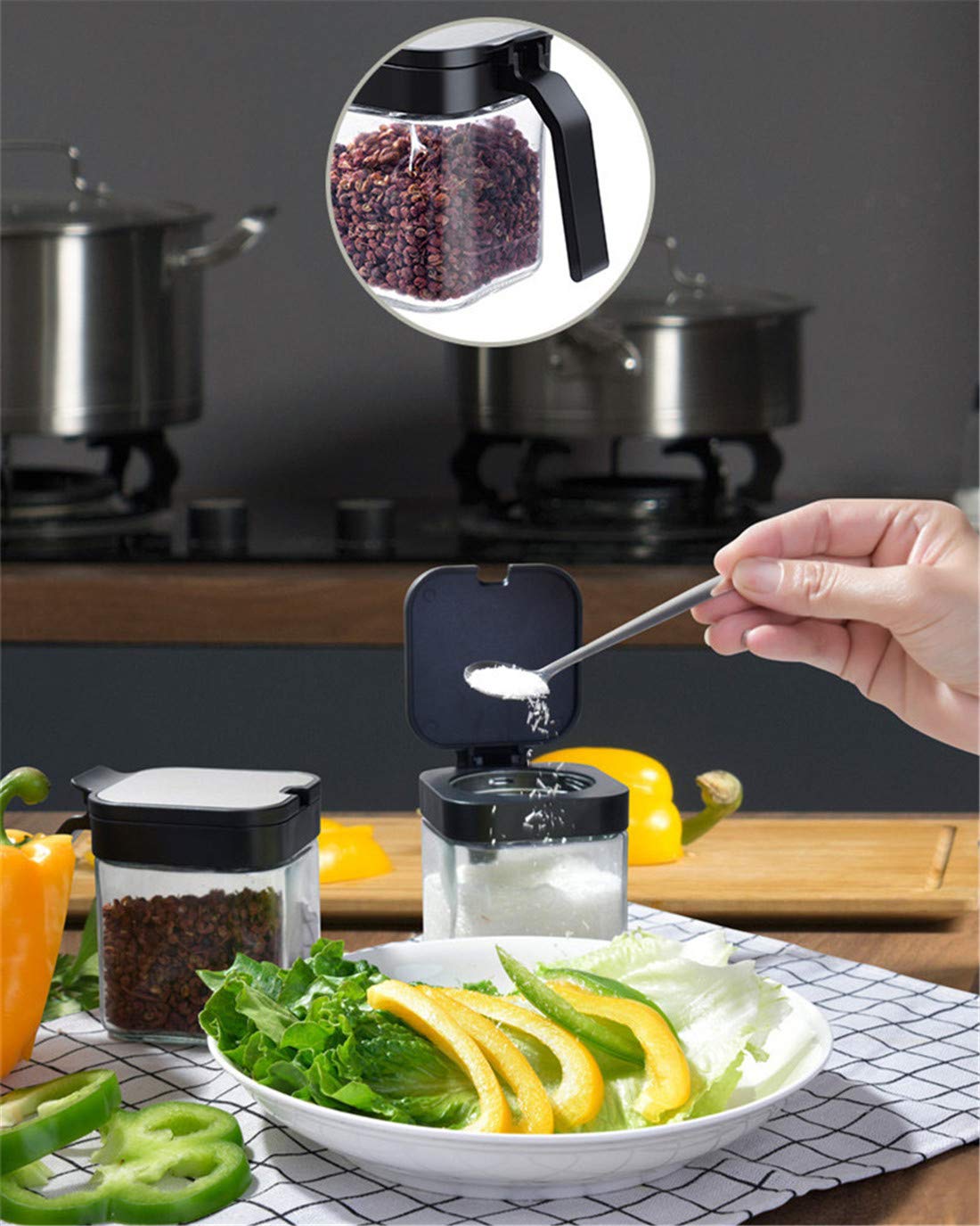 Gewürzbox mit verstellbaren Griffdeckeln, mit denen Sie die Länge des Löffels und der Bürste leicht einstellen können. Das NVKIC Gewürzbox-Set aus Glas ist Ihr perfekter Küchenbegleiter. Praktisch für den täglichen Gebrauch in der Küche. Gewürzdosen Für Garten Gewürzglas Für Die Küche, Keramikschüssel Mit Bambusdeckel Und Gewürz Behälter Set Transparent Öl Topf Haushalt Metallölkanne Glas Öl... – Grandado Außerdem ist die Reinigung einfach - nur eine schnelle Handwäsche ist alles, was Sie brauchen. Mit ihrer praktischen Größe und ihrem Volumen eignen sich diese Behälter perfekt für jede Küche. Mit seiner umweltfreundlichen Silikon- und Glaskonstruktion ist dieses Behälter-Set ideal für die Aufbewahrung einer Vielzahl von Küchenutensilien, von Kaffee und Zucker bis hin zu Saucen und Gewürzen. 【Soßenglas mit Pinsel und Salzbox mit Löffel】 Das Set enthält ein Saucendose mit Pinsel zum einfachen Auftragen und eine Salzbox mit Löffel für präzise Messungen. Das transparente Design macht es einfach, das zu finden, was Sie suchen, und die mitgelieferten Löffel und Pinsel machen das Dosieren zum Kinderspiel. Holz Gewürz glas Zucker dose Salzbox Gewürze Vorrats behälter mit Löffel ckel Küchen werkzeug für Hotels Cafés Buffets Partys Gewürzbox mit verstellbaren Griffdeckeln, mit denen Sie die Länge des Löffels und der Bürste leicht einstellen können. Sie ist gut zum einfachen Herausnehmen der Gewürze