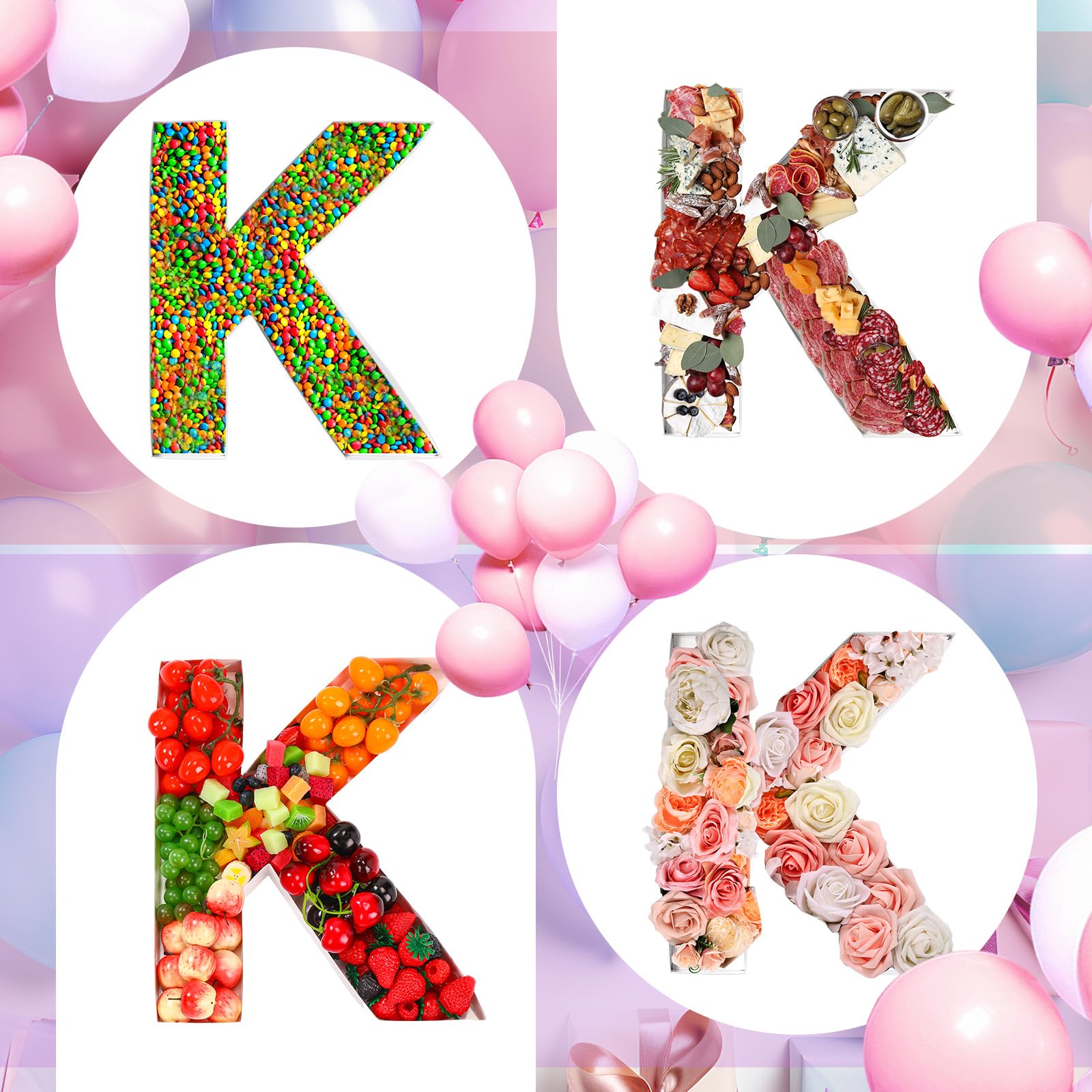 Papp Buchstaben Charcuterie Tablett, 35,6 Cm, Für Geburtstage, Jubiläen, Partys, Feiern, Befüllbar, Pappmaché, Schokolade, Süßigkeiten, Cupcakes ( Weiß, M