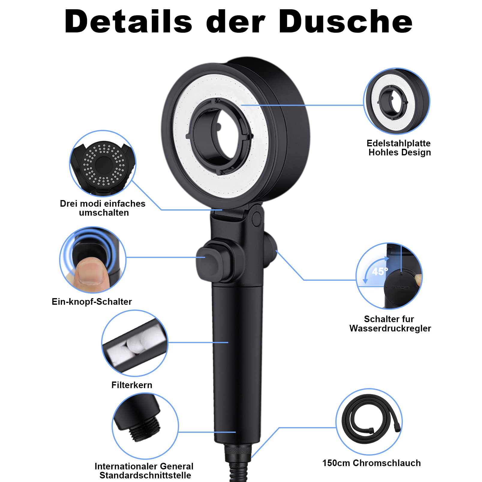 Für Massage Und Hautpflege Duschkopf, Wassersparend, Duschkopf Für Hartes Wasser Multifunktionaler Duschkopf Aquadon Shower Hero - wassersparender Duschkopf mit Filter Doppelseitiger Duschkopf-Duschkopf mit abnehmbarem Duschkopf zum Befüllen mit 25 ml Shampoo. Mit doppelseitiger Verwendung und 3 einstellbaren Modi: Regen, Spray, Stopp. Cobbe Duschkopf mit Filter, Hochdruck Handbrause mit Schlauch, 6 Strahlarten Duschkopf Wassersparend mit Filtration in 20 Schichten, Duschbrause für Hartes Wasser,Rest-Chlor,Bakterien, Schwermetall 8.106 4000+ Mal im letzten Monat gekauft 2879 Kann einfach an jeden Standard-Brauseschlauch angeschlossen werden., Hochwertiges Produkt. Komfortabel: Dank des handlichen Griffs ist er sehr hitzebeständig, nicht heiß, liegt gut in der Hand, um die Verwendung in Ihrer Dusche zu erleichtern. Universell passend für alle Brauseschläuche und Wasserhähne mit Dusche oder Badewanne (mechanisch oder thermostatisch).