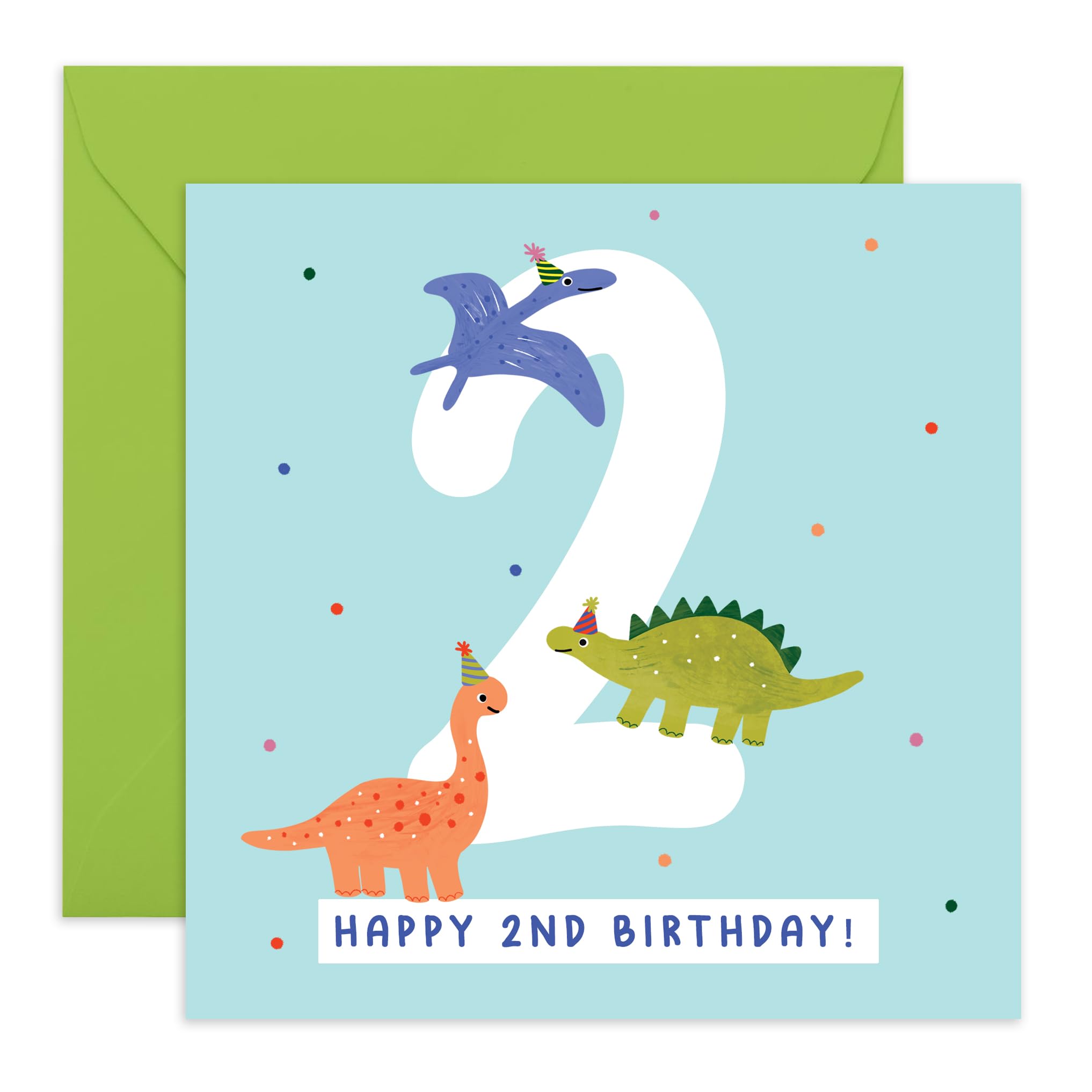 Old English Co. Geburtstagskarte Zum Zweiten Geburtstag Für Jungen Oder Mädchen – Happy 2nd Birthday – Alter 2 – Zwei Jahre Alt – T Rex Dinosaurier-Motiv Geburtstagskarte Für Sohn, Tochter, Nichte