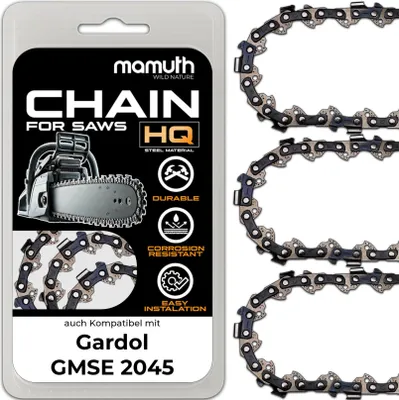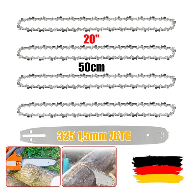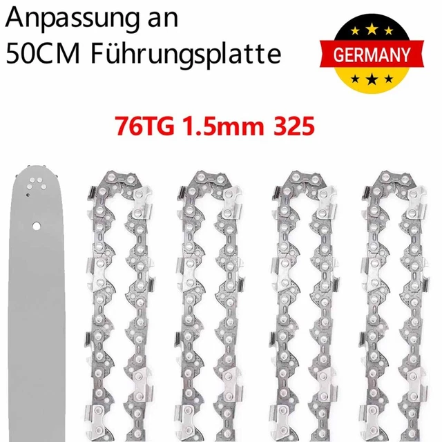 Die Teilung der Treibglieder sollte auch bekannt sein (z., B., 3/8 Zoll oder 0., 325 Zoll). Es handelt sich hierbei nicht um die Gesamtlänge des Schwerts, diese ist immer länger., Siehe Bild. Nutbreite der Treibglieder 1,5mm Ketten- und Führungsschienensatz bestehend aus 2 Sägekette(n) (Vollmeißel) und 1 Schwert/Führungsschiene mit gelagertem Umlenkstern, passend für Mc Dillen 5800 Motorsäge. Mit Schnittlänge oder auch Arbeitslänge, ist die Länge ab Gehäuse bis Schwertspitze gemeint. Nicht nur die Länge kann anders sein, in der Regel sind drei bis vier verschiedene Arbeitslängen im Handel möglich. Arbeitslänge / Schnittlänge (ab Gehäuse im montierten Zustand messen): 45cm (+/- 1cm) , Teilung: 0., 325' | Nutbreite: 1,5mm | Treibglieder: 72 Handstarter Seilzug starter Kettensäge Motorsäge Mc Dillen Timbertech tallox Schwert und 3 Sägeketten 3/8 1,3 56 TG 40 c Führungsschiene... W I C H T I GJede Motorsäge hat unterschiedliche Schneidgarnituren. 1 Schwert mit Umlenkstern in 45cm Schnittlänge Bitte messen Sie vorher Ihre Kette und Schwert, weitere Hinweise siehe Beschreibung Daher ist der sicherste Weg, die Treibglieder zu zählen und darüber die Kette zu definieren. 2 Sägeketten VM + Schwert Passend Für Mc Dillen 5800 | 45cm 0.325 72TG