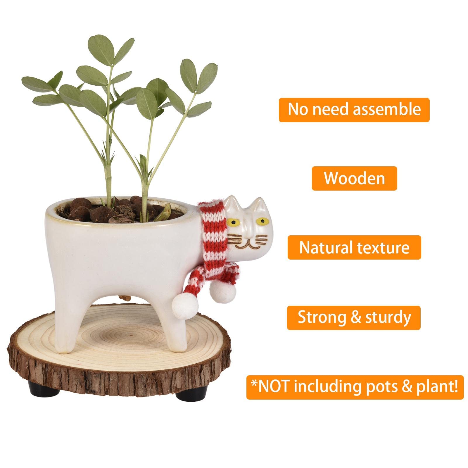Keebgyy Niedriger Pflanzenständer, Runder Riser-Halter, Ständer Für Mehrere Pflanzen, Pflanztopf-Riser-Halter, Moderner Mit Holz,(braun L