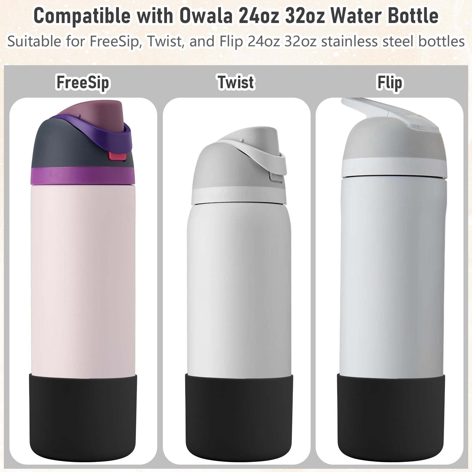 Ersatzdichtung für FreeSip-Ausguss, grau Sale | Water Silikonstiefel kompatibel mit Owala 907., 2 g Freesip Wasserflaschen., Rutschfest , Einzigartiges Design , Ein unverzichtbares Accessoire , Leicht zu reinigen , Bonus für 2 Farben 2 X Glitzernde Silikonstiefel Für Owala Wasserflasche, 907 Ml Silikonstiefel kompatibel mit Owala FreeSip 907.2 g, Twist 907.2 g Wasserflaschen. - Kompatibel mit Owala FreeSip 907.2 g Wasserflasche Boot. Wasserflaschen-Stiefel aus elastischem Silikon schützt vor Dellen am Flaschenboden, Beschädigungen und reduziert Lärm