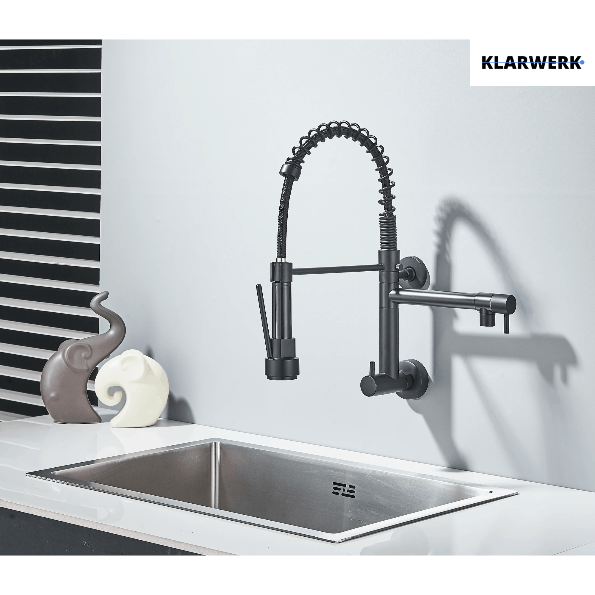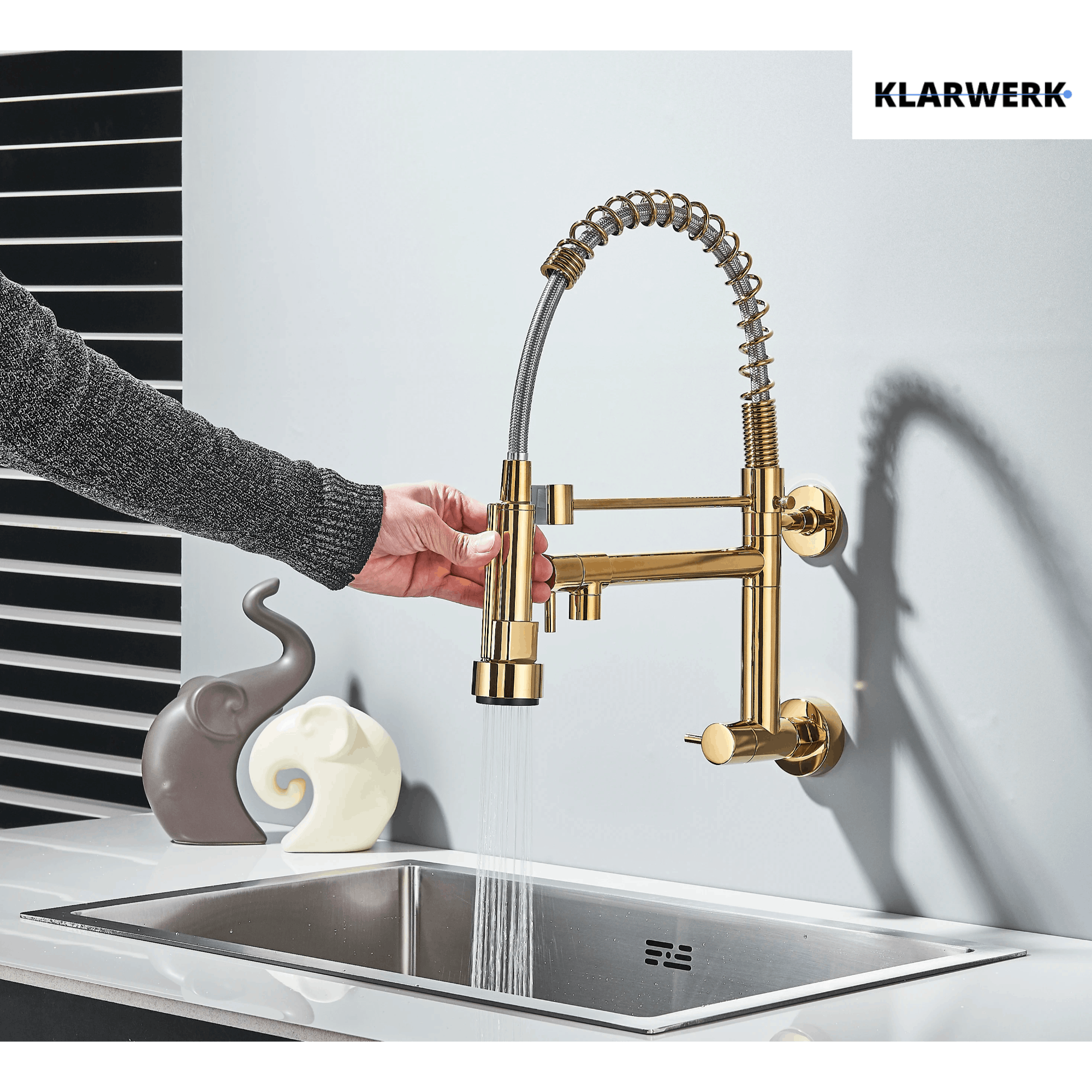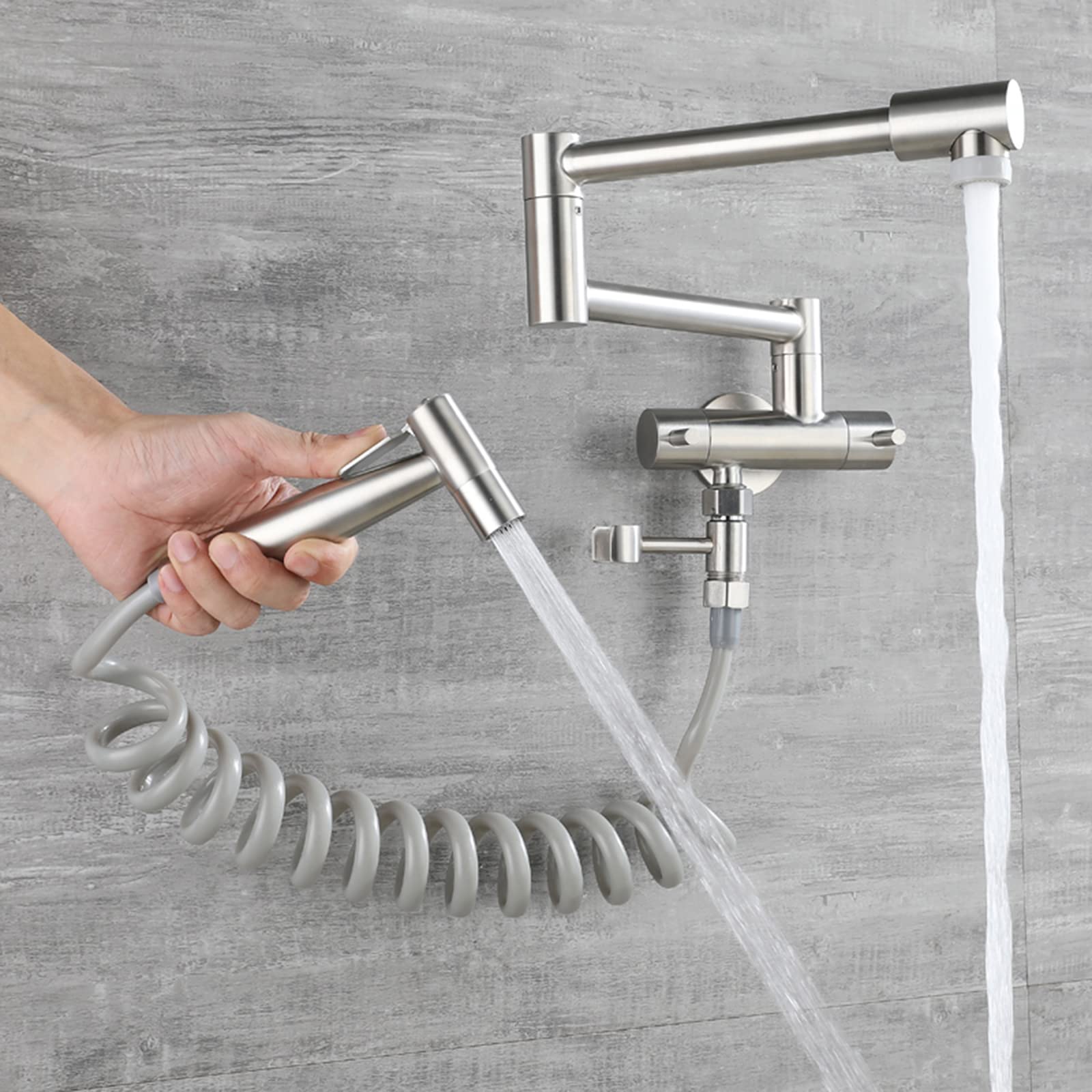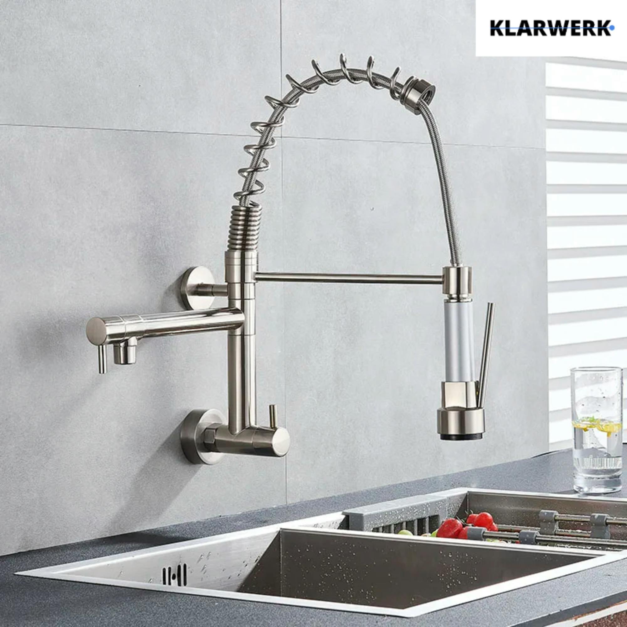 Sollbry Küchenarmatur Zur Wandmontage Für Spüle, Küchenarmatur Mit Spritzpistole Und 2 Arten Von Wasserstrahlen, 360° Drehbar, Gebürsteter Edelstahl