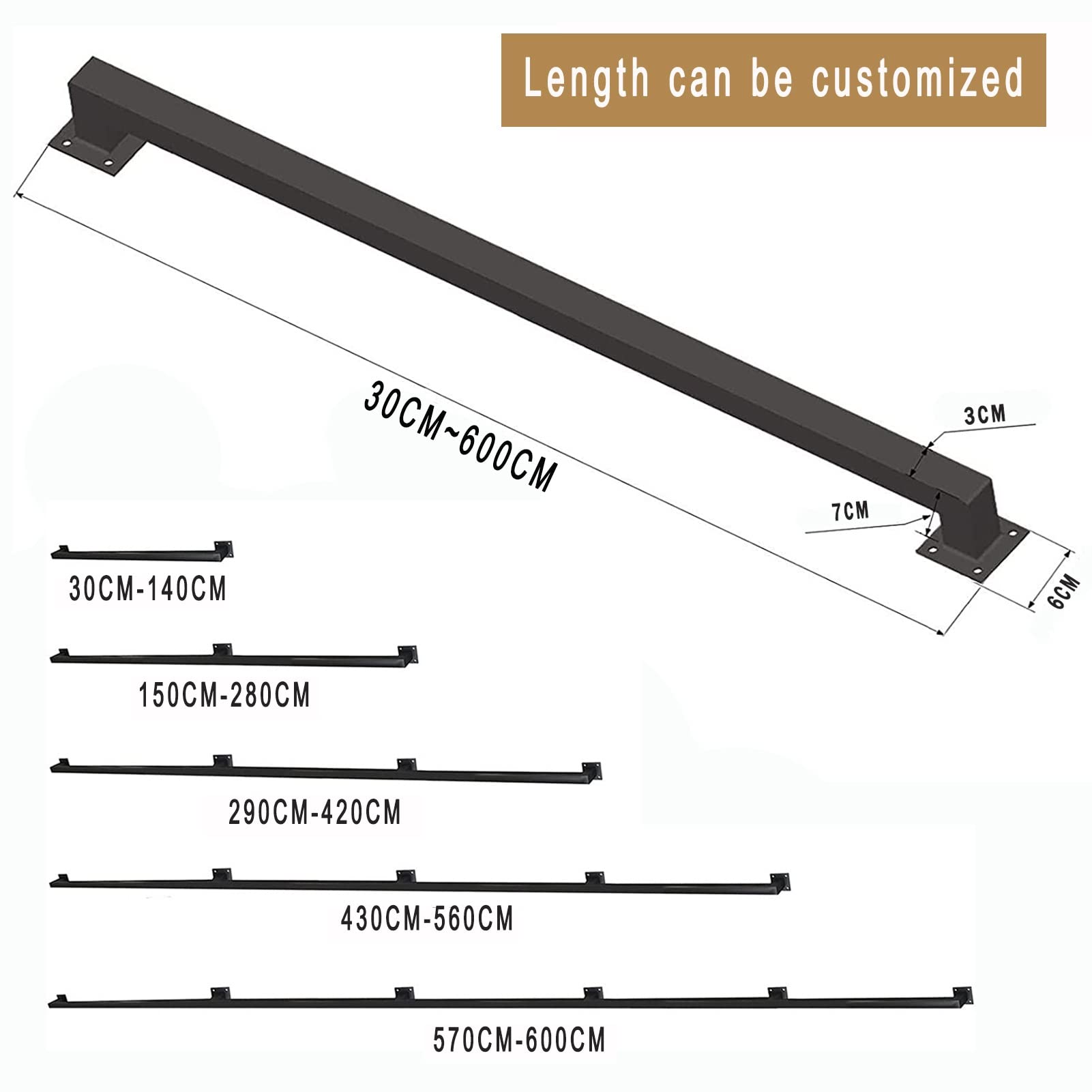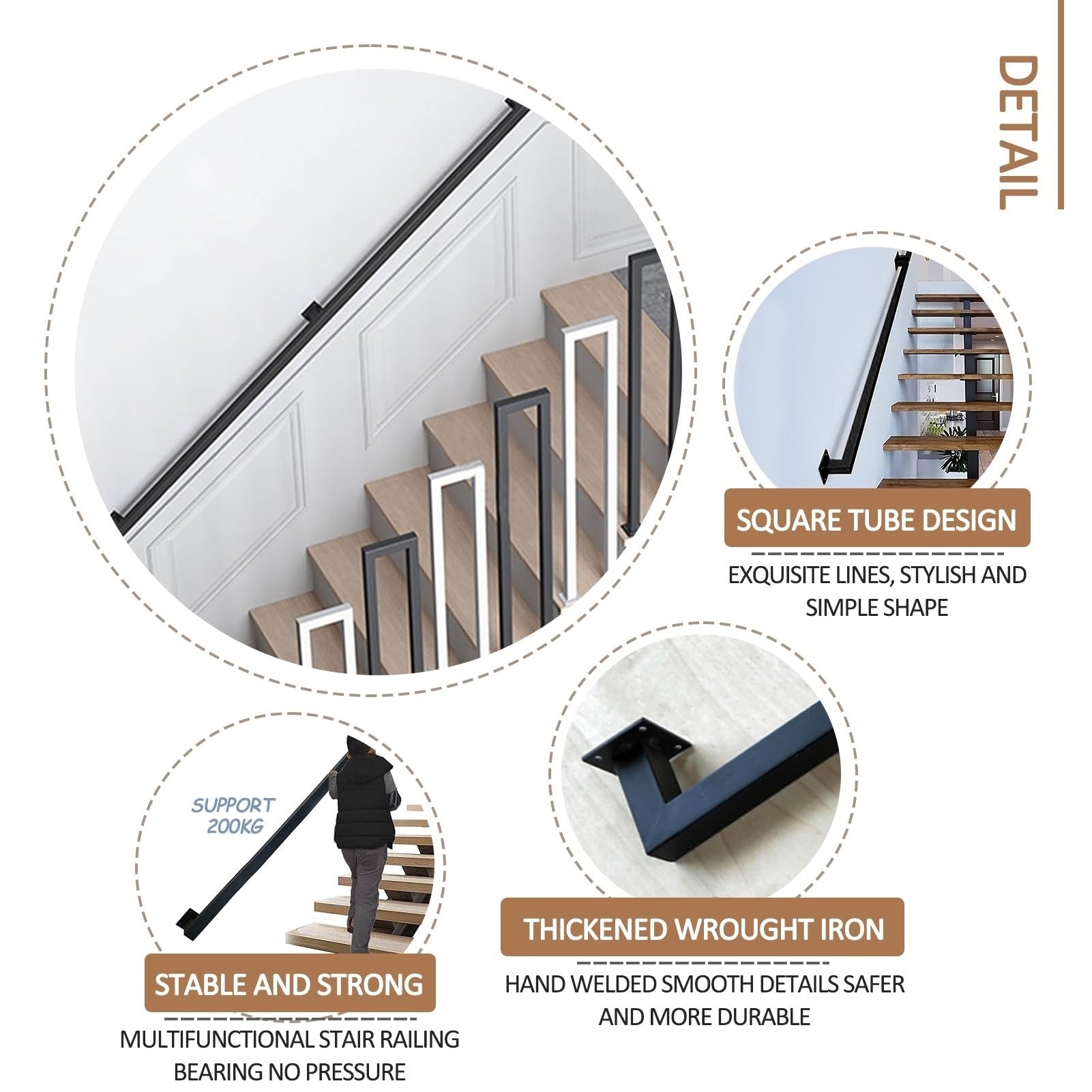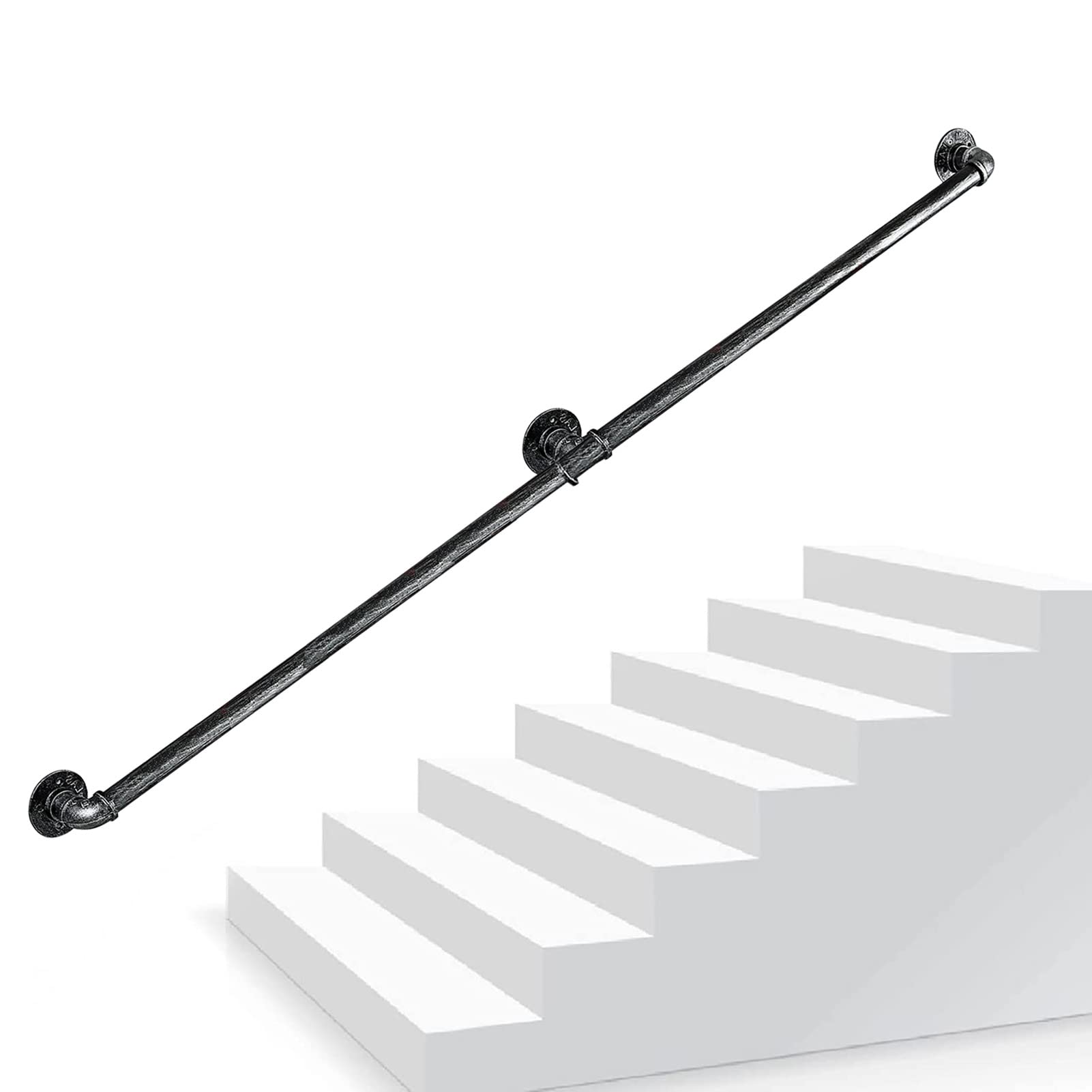 Industrieller Stil, Schwarzer Quadratischer Rohr-Handlauf Für Treppen, Wandhalterung, Stützgeländer, Treppen, Haltegriff Mit 200 Kg Tragkraft, 4,3 M, Verzinktes Eisen-Handlauf Für Heimdekoration