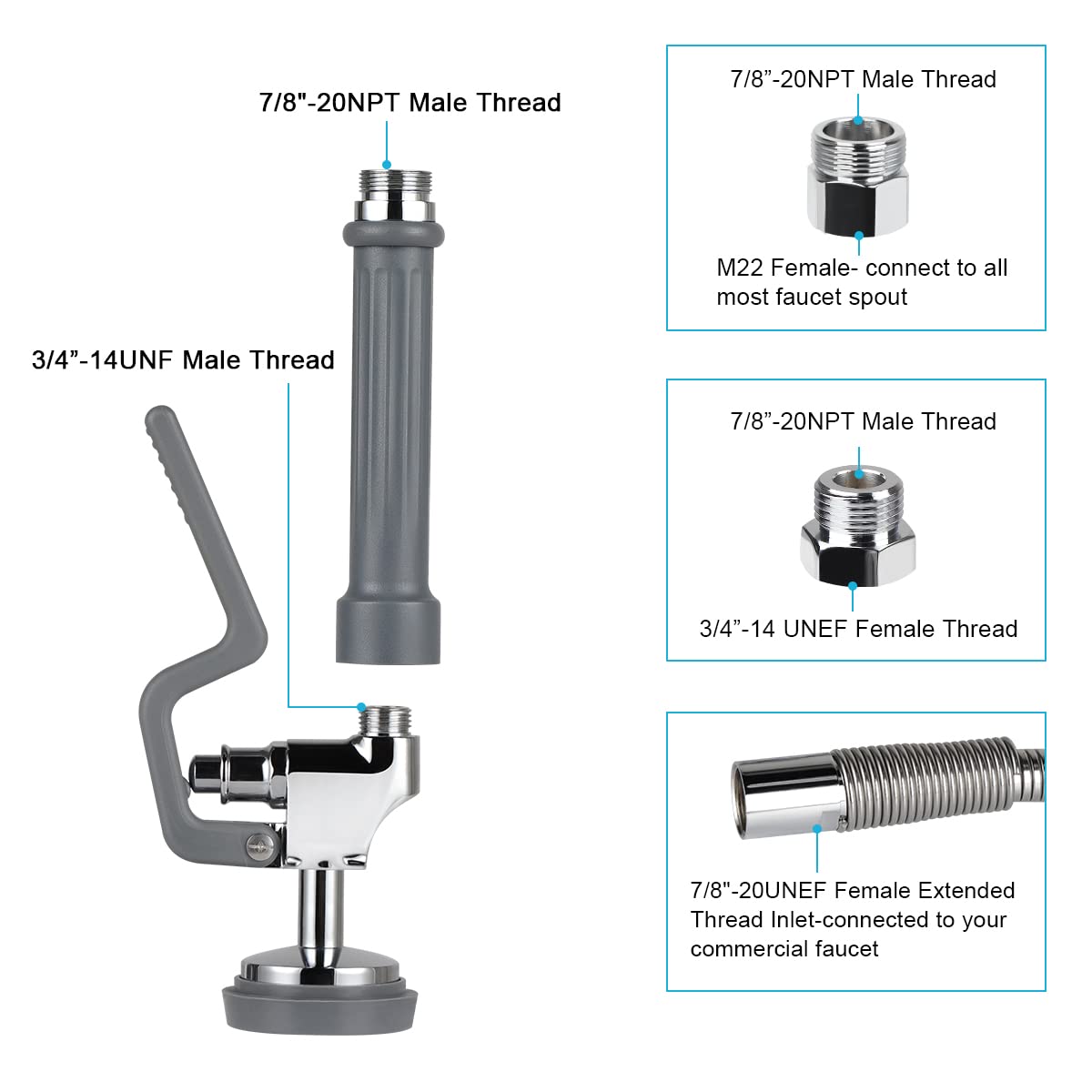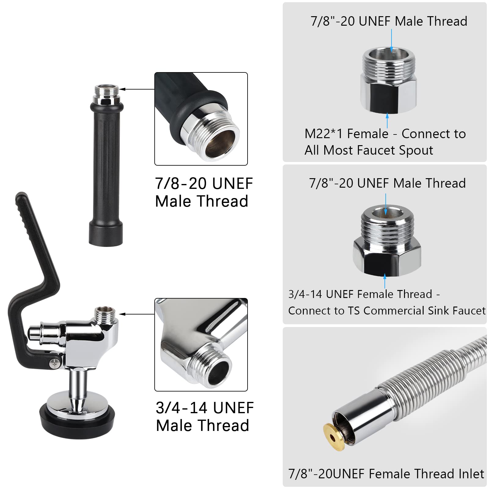 Unser Ziel ist es, dass handelsübliche Schwerlasthähne Ihre Küchenarbeit effizient begleiten und Ihre Arbeit einfach und unterhaltsam machen. Weit verbreitet für US-Restaurants, Häuser, Industrieküchen und Bauernhäuser. Eigenschaften des kommerziellen Waschbeckenschlauchs: ★ Länge: 38 Zoll (96,5 cm) ★ Ausgang und Eingangsgewinde: 7/8 Zoll-20 NPT ★ Material: poliertes verchromtes Messing Endstücke und Edelstahlschlauch Eigenschaften des Sprühkopfs: ★ Wasserdurchfluss: 1,42 GPM., ★ Grifftyp: Drückgriff. Techcon Sprühventil TS5540-028R mit Runddüse - bei bestellen DYVIAHOME Vorspülschlauch mit Sprühventil, 96,5 cm, flexibler Flexibler Edelstahlschlauch Dank seines 96,5 cm Flexschlauchs ist dieses Sprühventil in der Lage, mehrere Spülbecken zu erreichen, was es besonders nützlich bei einer dreiteiligen Spüle macht. 1 x graues Sprühventil. Im Falle von Lecks, verwenden Sie Wasser-Klebeband. Dieser Sprühkopf ist ideal, um größere Lebensmittelpartikel von Ihren Töpfen, Pfannen und Ausrüstungsteilen zu entfernen, während Sie sie für den nächsten Einsatz in Ihrem Restaurant, Cafeteria oder Bar reinigen. ★ Griffgewindegröße: 7/8 Zoll-20 UNEF Außengewindeeinlass. Ersatz Flexibler Schlauch Duschschlauch M15 Länge 150 cm Antik Bronze... 1 x 22-Adapter, 20 NPT auf M22., 1 x 7/8-Zoll-20NPT auf 1/2-NPSM-Adapter., 1 x Edelstahlring., 4 x Wasserreiniger. Kanoney, Vorspül-Sprayer-Set für kommerzielle Spültischarmaturen. ★ Material: aus POM-Kunststoff, Anti-Aging. Innovativer Edelstahl-Spritzschutzhahn Für Universelle Duscharmatur Mit Wenn Sie Fragen haben, können Sie uns über die Bestellung kontaktieren.