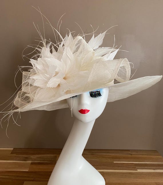 Frauen Fascinators Sommer Hütte Sinamay Blumen- Br... – Grandado Perfekt für viele besondere Anlässe wie Hochzeiten, Gartenpartys, Rennveranstaltungen, Kirche oder einfach nur die Führung auf jeder Bühne. Mit dieser fesselnden Kopfbedeckung können Sie zeitlose Eleganz umarmen und alle Blicke auf sich ziehen. 【Anwendbarer Anlass】 Dieser Hut mit breiter Krempe strahlt Raffinesse und Stil aus. Die strukturierte Krempe bietet reichlich Schatten, während das elegante Schleifendetail einen Hauch von Raffinesse verleiht. Hauptmaterial: Matter Satin, außer den Accessoires. Leicht und bequem, diese Mütze ist das perfekte Accessoire, um Ihren polierten Look zu vervollständigen. Kentucky Derby Hat, Cream Hat, Derby Fascinator, Easter Fascinator F FADVES Royal Ladies Sinamay Weddings Hats Fascinators Big Champagner große Sinamay Scheibe Hochzeit Fascinator Geeignet für Kopfumfang: 55–57 cm