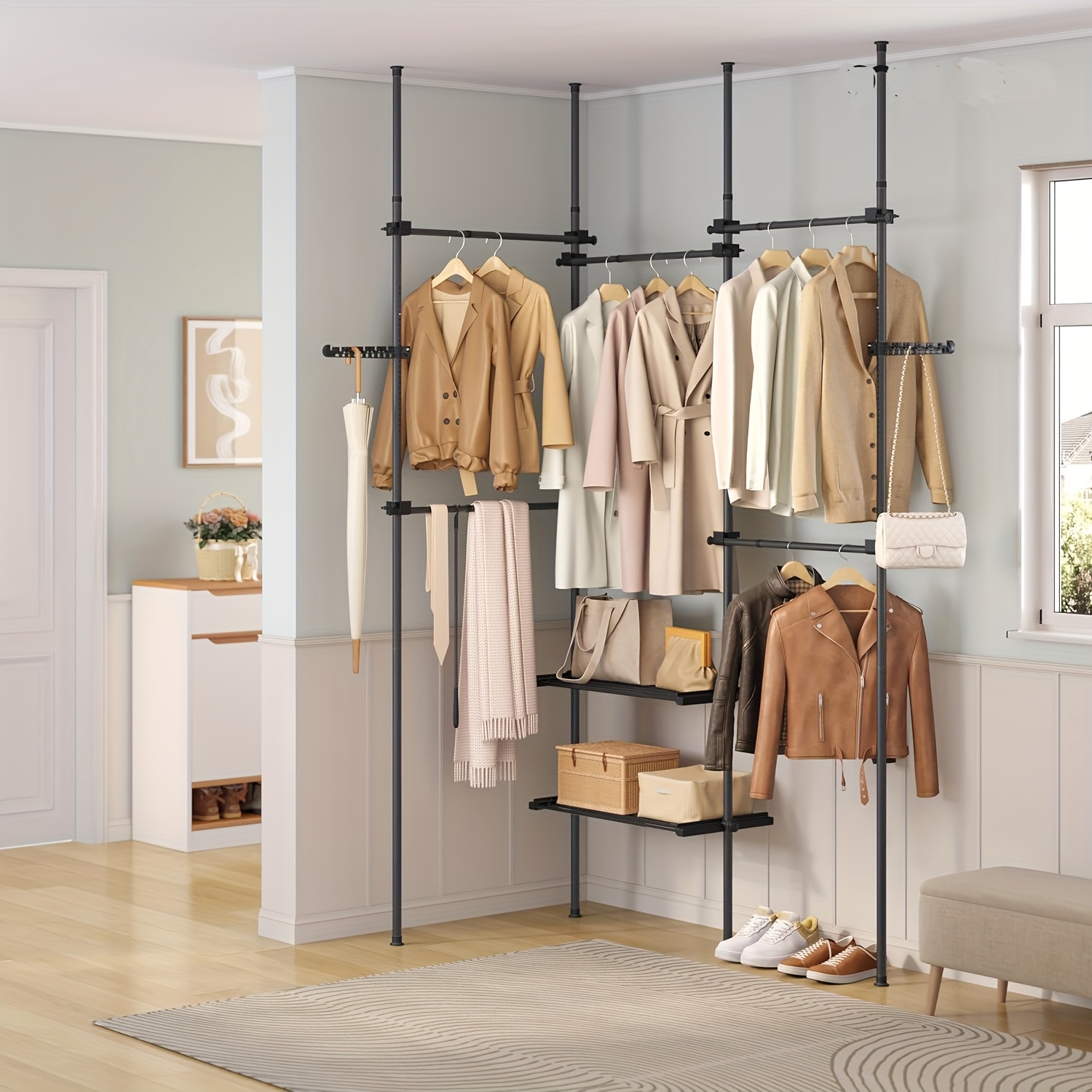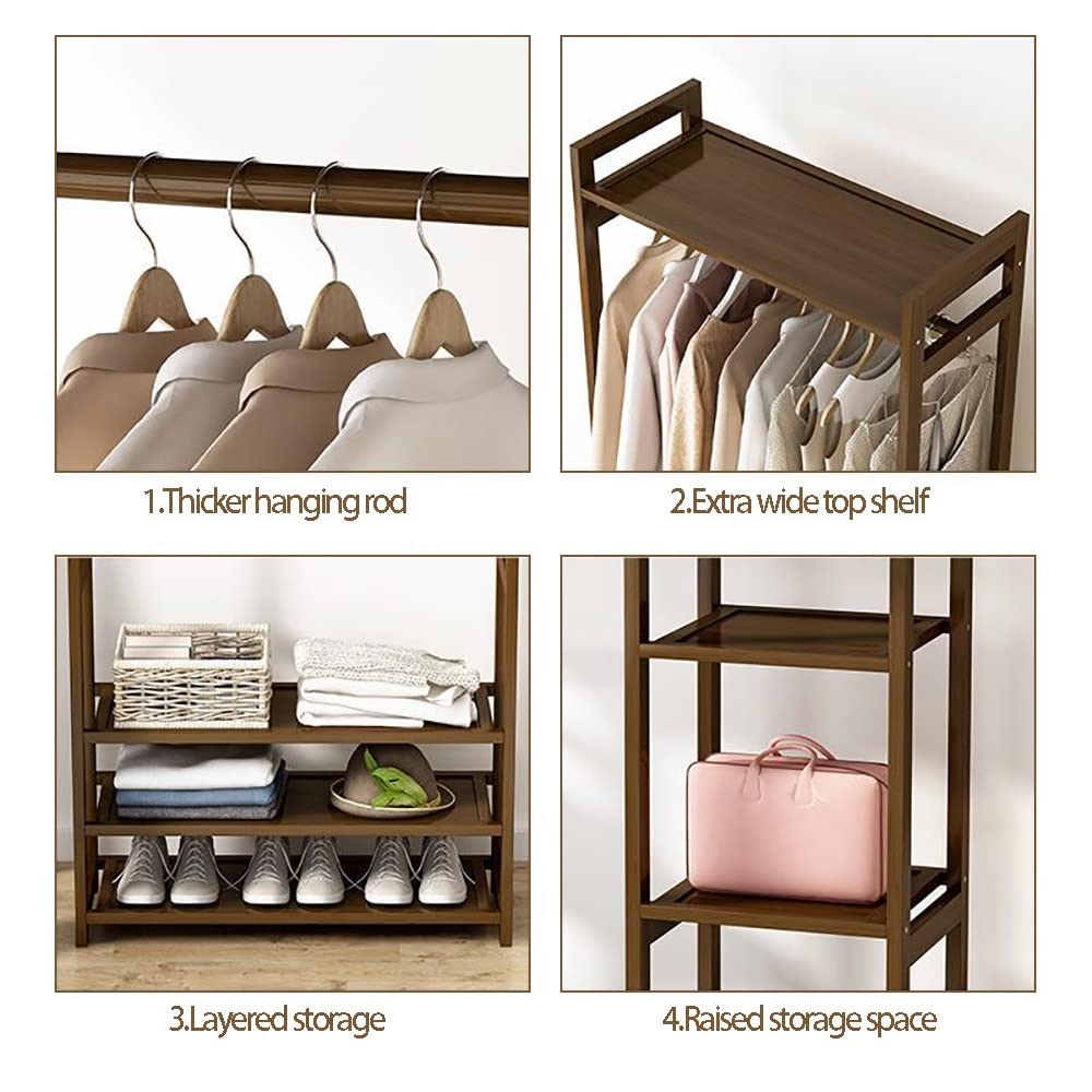 FGHUF Bambus-Kleiderständer, Freistehender Kleiderständer, Offener