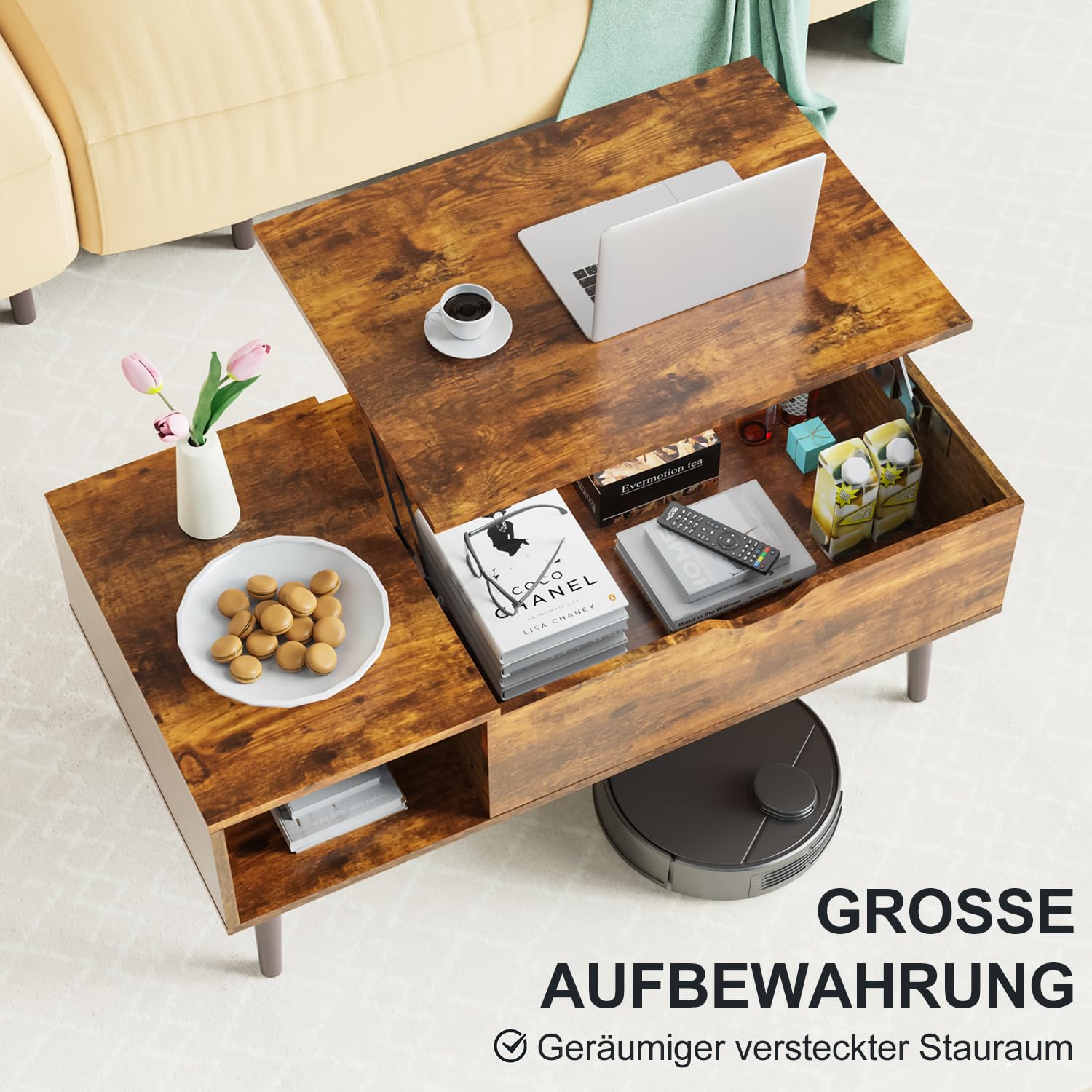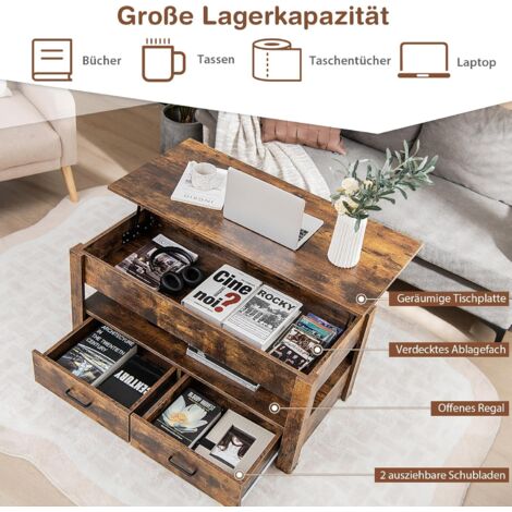 Woltu Couchtisch 1-St , Verstecktes Fach Unter Der Tischplatte Anhebbare Tischplatte S05d80gz