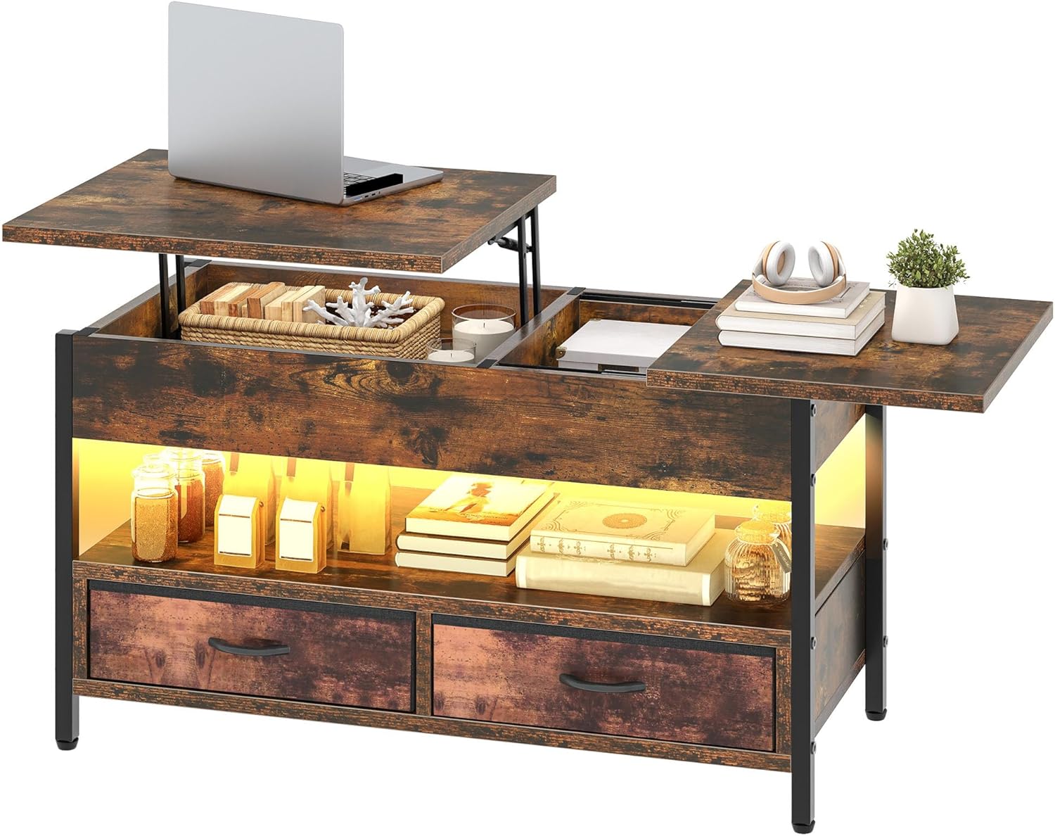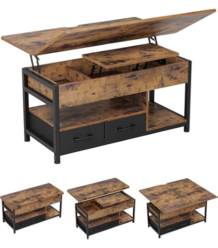 【Geräumige Aufbewahrung】Unser Wohnzimmertisch ist sorgfältig verarbeitet und verbindet Funktionalität mit einem glatten, modernen Look. 【Dual Access Drawers】Dieser mit Stauraum ausgestattete Couchtisch ist mit doppelseitigen Schubladen ausgestattet, was seine Aufbewahrungsfähigkeit erhöht. 【Stabile Konstruktion】 Dieser Wohnzimmer-Couchtisch verfügt über einen Doppel-Top-Hebemechanismus. Für diejenigen, die die Funktionalität ihres Wohnraums voll ausschöpfen und gleichzeitig Stil beibehalten möchten, ist diese Eigenschaft besonders vorteilhaft Dieser verstellbare, anhebbare Couchtisch hat faltbare Teile. Es verfügt über ein 3-stöckiges Aufbewahrungssystem und starke Metallbeine, die allgemeine Stabilität und Haltbarkeit gewährleisten. 【4 Funktionen】Ein multifunktionaler Esstisch. Couchtisch höhenverstellbar Sofatisch Hochglanz Beistelltisch mit LED-Beleuchtung (80 x 80 x 45 cm, 1-St., Tischplatte aus gehärtetem Glas und Spanplatte), Wohnzimmertisch mit 2 Schubladen, verstecktem Stauraum und Ablagefach Wohnzimmertisch Höhenverstellbar Woltu Couchtisch 1-St , Verstecktes Fach Unter Der Tischplatte Anhebbare Tischplatte S05d80gz Höhenverstellbarer Couchtisch Im Gegensatz zu herkömmlichen Couchtischen mit einem einzigen Hebemechanismus verfügt unser über zwei, die Stabilität und Unterstützung bieten Sie suchen einen hochklappbaren industriellen Couchtisch? Dann verlieben Sie sich in diesen Couchtisch, der sich in einen Esstisch aus Holz und Schwarz umwandeln lässt, zu einem günstigen Preis! Merax Hebbarer Multifunktions-Couchtisch - Tischplatte öffnet sich zu 2 Tischen, Weiß + Originalholzfarbe, große Kapazität Lieferung innerhalb von 2 - 5 Werktagen nach Zahlungseingang. versandkostenfrei. 89,90 € inkl. MwSt