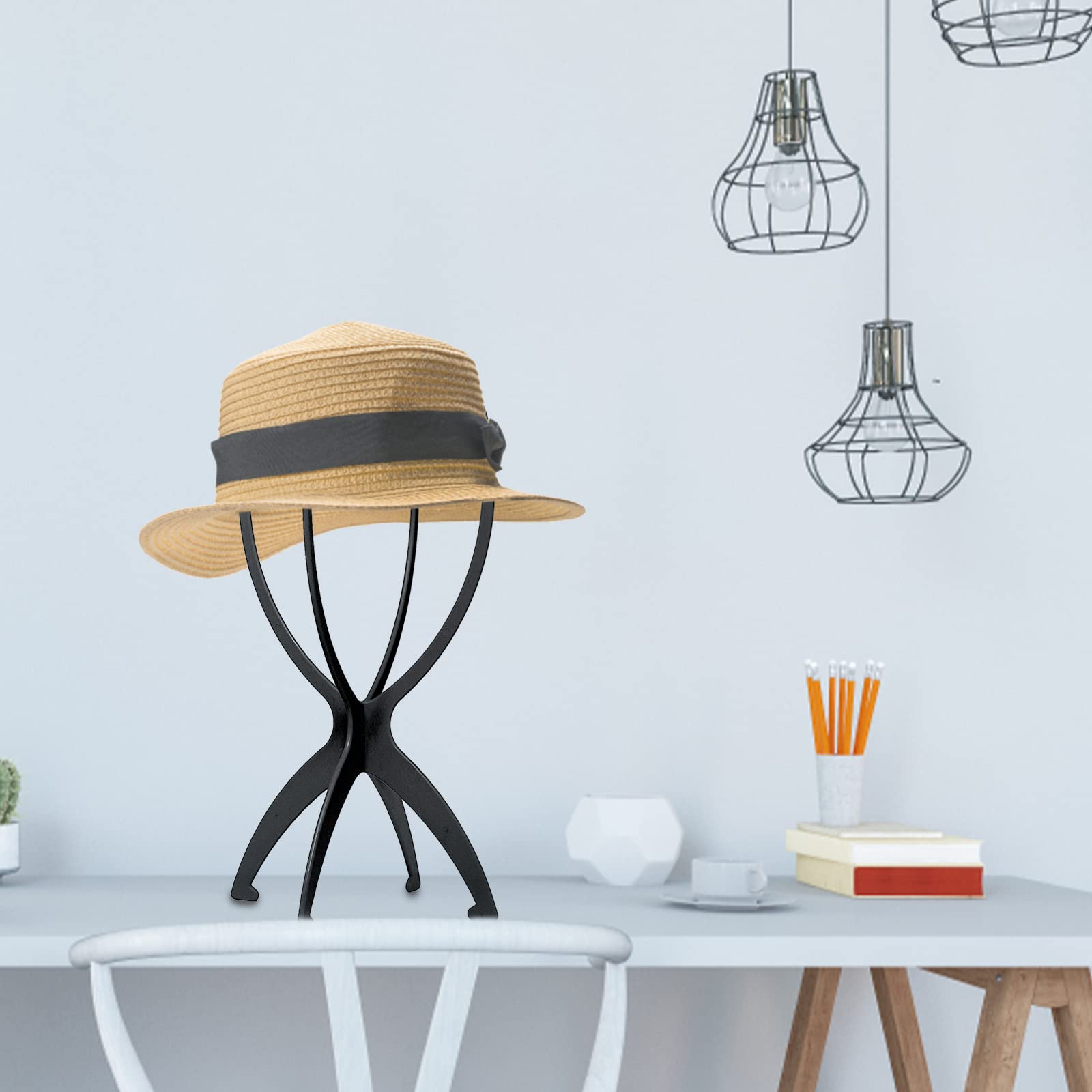 8 Stück Perückenständer Kunststoff Faltbar Perückenhalter Tragbar Faltbar Perückenhalter Kopf Kurze Perücken Display Stand Werkzeug Für Die Meisten Perücken Hüte Lagerung Reisen (Schwarz