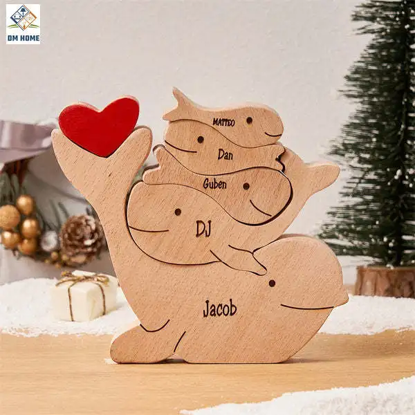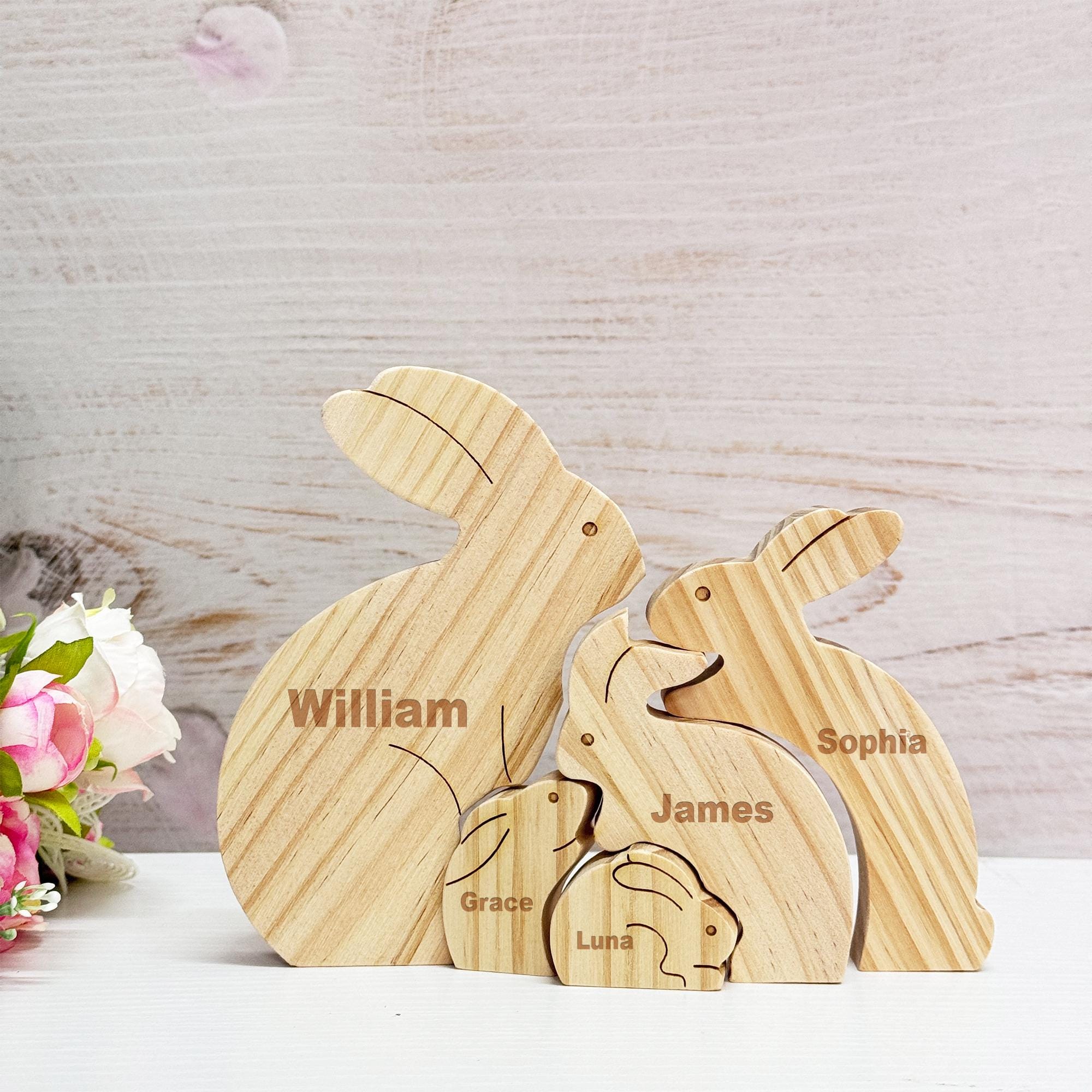 Personalisiertes Holzkunstpuzzle 5 Holzfigur Familie Hasen Familie Tier
