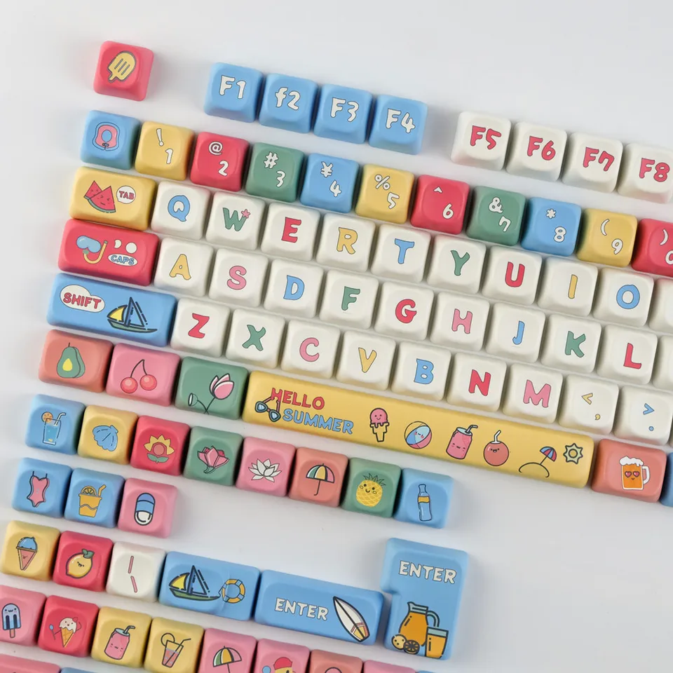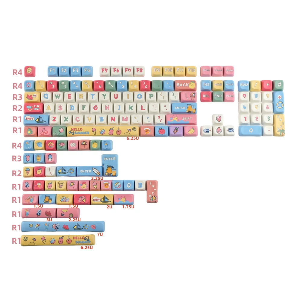 JakeTsai PBT-Tastenkappen, 128 Tasten Farbstoff Sublimation Kirschprofil Tastenkappen Mit 6.25U
