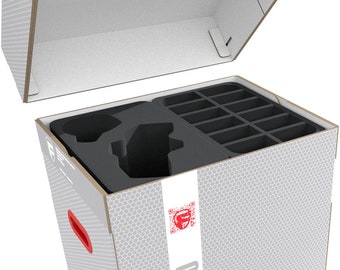 3D-gedruckte Modelle können kleine Unvollkommenheiten aufweisen. Zwei versteckte Magneten an der Vorderseite der Box ermöglichen ein einfaches und schnelles Öffnen sowie Schließen der Box. Die Box bietet Platz für bis zu 10 Standard größere Miniaturen (bis 25 mm Base) 1 x 35 mm Schaumstoffeinlage mit 10 Fächern, 1 x Schaumstoffdeckel So ist die Magnetbox nicht nur stabil, ansprechend im Design und praktisch im Handling, sondern auch leicht im Gewicht. Die Box bietet Platz für bis zu 10 Standard grössere Miniaturen (bis 25 mm Base Feldherr - Feldherr - MAXPLUS32 - MAXI PLUS Tasche Box Abmessung außen: 290 mm x 180,0 mm x 45 mm, Magnetverschluß, Warnhinweise No In die Box passen alle Feldherr half-size Schaumstoffeinlagen bis 40 mm Höhe Die Box besteht aus einer farbigen Box, die durch eine Vollkarton-Ummantelung verstärkt ist. Box Abmessung innen: 275 mm x 172,5 mm x 40 mm Innenhöhe Rohdichte 23,0 kg/pro Kubikmeter (+/- 2,0) Feldherr hat die Lösung für all deine herumliegenden Token, Spielsteine und Marker. Mit dieser Kombination aus Magnetbox, Schaumstoff und Tokenhalter bekommst du endlich Ordnung in dein Spielzubehör Säure- und chlorfrei! Produktbeschreibungen Schöne, leicht zu verstauende und praktische Magnetbox im half-size Format. Abmessung der Half Size (HS) Schaumstoffeinlage jeweils: 275 mm x 172 mm x 35 mm Höhe (25 mm Nutzhöhe; 10 mm Boden), Made in Germany, Schaumstoff Feldherr Magnetbox Blau Für Warhammer Underworlds: Beastgrave - Fetza, 22,49 Die Produktbilder zeigen mögliche Anwendungen, Farben können abweichen.