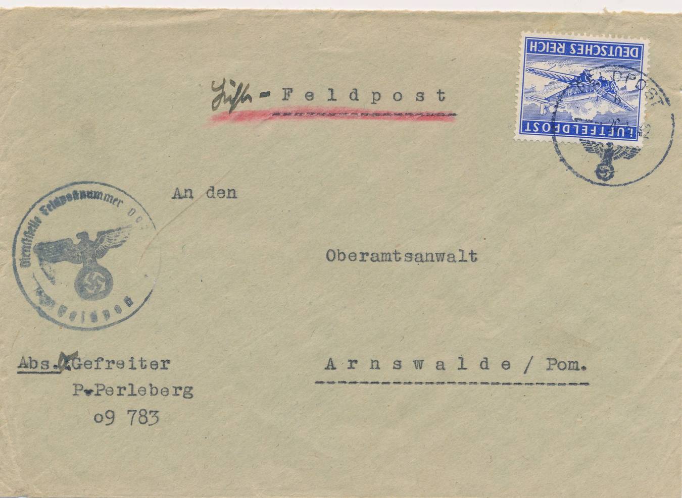 Brief DR Feldpost 2.WK Mit Rotem Stempel Feldpost ü Dt. Dienstpost
