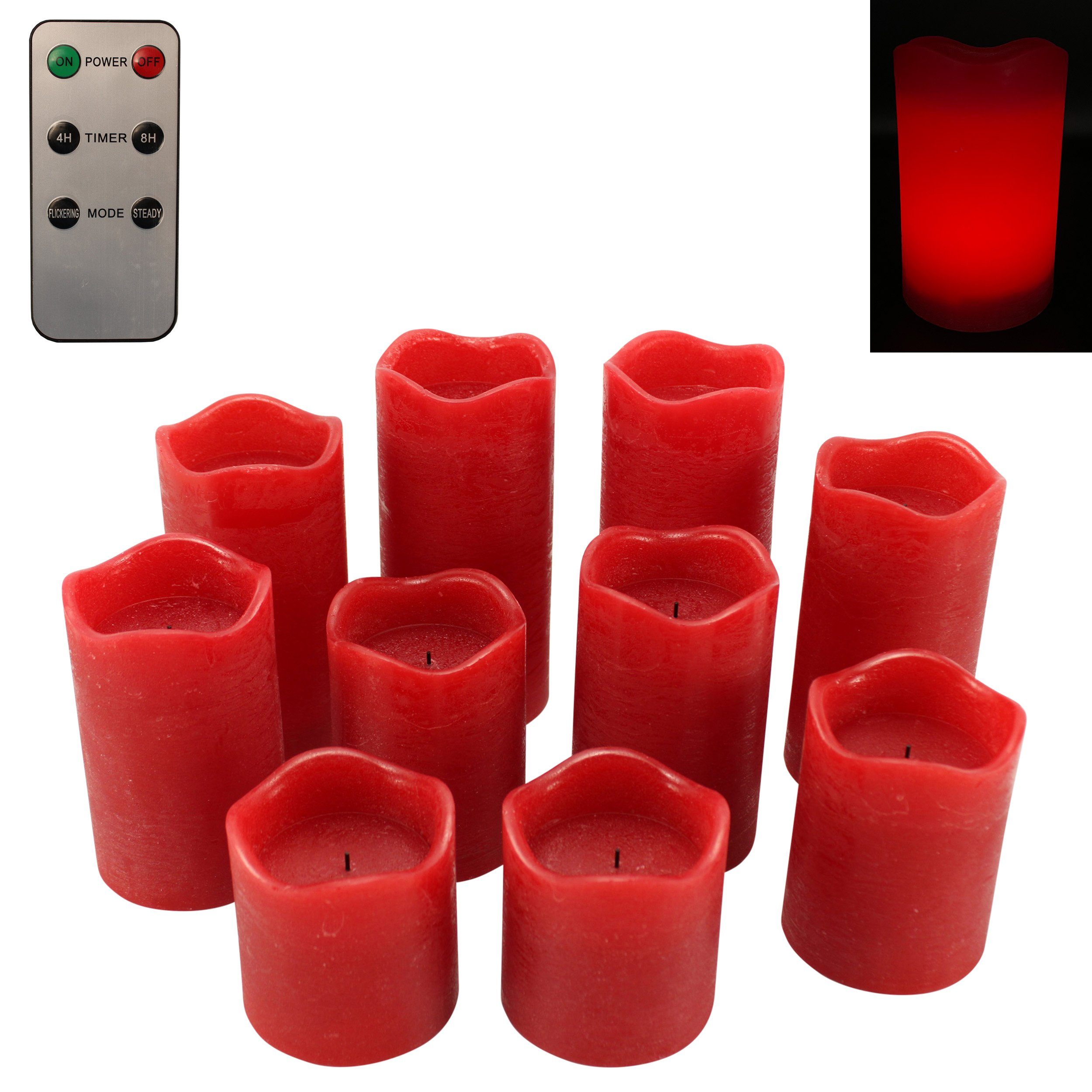 Kerzen Rot Eywamage Glas Flammenlose Kerzen Mit Fernbedienung Batteriebetriebene Flackernde LED-Stumpenkerzen Echter Wachsdocht 3er Pack D 3 H 4 5 6 Grau | AT Led Kerzen Für Adventskranz Coated in real wax, candles are simulated fixed black wick flame with a pulse flickering effect, emitting a warm white glow, mimic the look of real burning candles. Eine großartige Alternative zu echten Kerzen. Auf Produktbildern gezeigtes Zubehör sowie Deko-Artikel sind nicht in der Lieferung inbegriffen. Höhe: ca.10cm Durchmesser: ca. Create a cozy and joyful ambiance this holiday season with this red led candles set. Sicher und ohne Feuergefahr: Sie können diese flackernden flammenlosen Kerzen überall hinstellen, ohne sich Sorgen machen zu müssen, dass Kinder oder Haustiere sie umwerfen, nahe gelegene Gegenstände in Feuer fangen oder eine Brise sie ausblast Batteriebetriebene Kerzen - Jede Kerze wird von 2 AA-Batterien (nicht im Lieferumfang enthalten) mit einer Lebensdauer von über 350 Stunden betrieben, lange Batterielaufzeit. Ø6,5cm Brenndauer: ca. Realistische Weihnachtskerzen - Mit echtem wachs überzogen und mit festlichen mustern gestaltet, wird dieses rote weihnachtskerzenset eine auffällige dekoration für Ihre weihnachtsdekoration. Sie bekommen diese wunderschön winterlichen Stumpenkerzen in dunklem Rosa zu viert für den Adventskranz und den Weihnachtstisch. Eywamage Red Christmas LED Wax Candles remote controlled, Ø 3 H 4 5 6 Assorted in size, these candles measures 3 inch diameter by height from 4 to 6 inch. Eywamage Gold Glas Flammenlose LED Stumpenkerzen mit Fernbedienung 3 Stück Dieses Kerzenset besteht aus echtem Glas und einer simulierten schwarzen Dochtflamme, die eine festliche Stimmung und ein gemütliches Ambiente erzeugt Each candle is powered by 2 AA batteries (not included), no open flame and no fire risk. Spetebo LED Wachskerzen rot mit Kerzentellern gold - 4er Set - Künstliche Stumpen Kerzen mit Fernbedienung Sicher & Sauber - Diese elektrischen Kerzen sind flammenlos, tropffrei, ohne Unordnung, windfest, und Sie müssen sich keine Sorgen machen, dass Kinder oder Haustiere die Kerzen umstoßen oder Ihre geliebten Möbel beschädigen. Remote allows to manage the power, set timer, adjust brightness, and set flickering effect within 20 ft, a must-have for holiday decor. Viel Spaß beim Shoppen und Stöbern! ✅