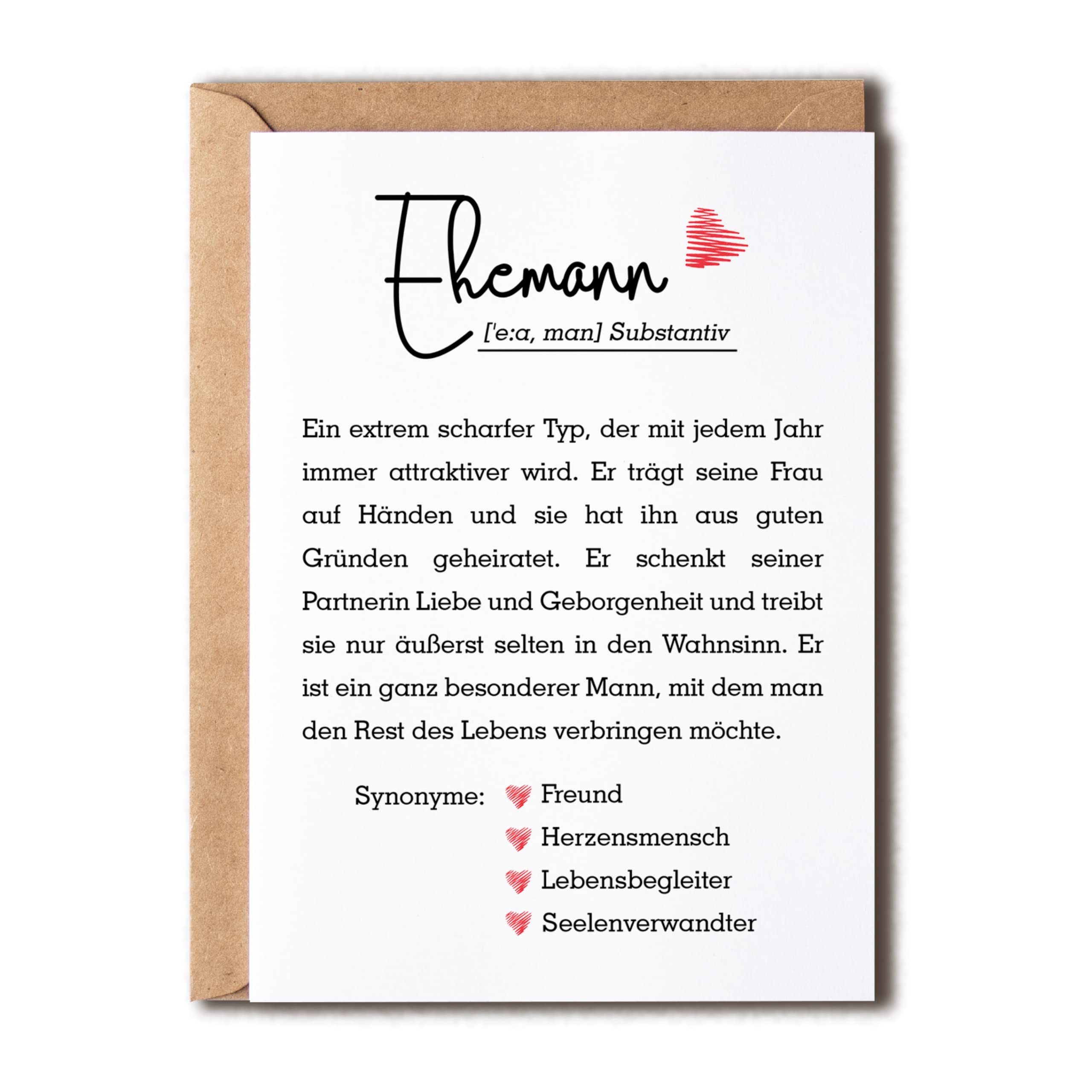 Fhemann Karte - Postkarte Ehemann Umschlag Ehemann Geschenk Definition Ehemann Karte - Ehemann Geschenkkarte - Ehemann Karte