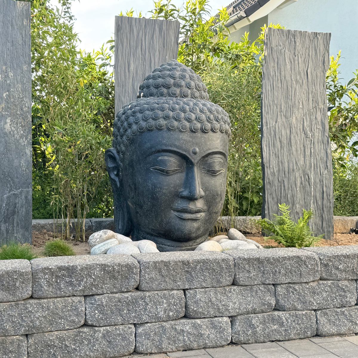Oriental Galerie Buddha Kopf Head Figur Gartenfigur Steinfigur Lavastein Skulptur Bali Garten Schwarz 55 Cm