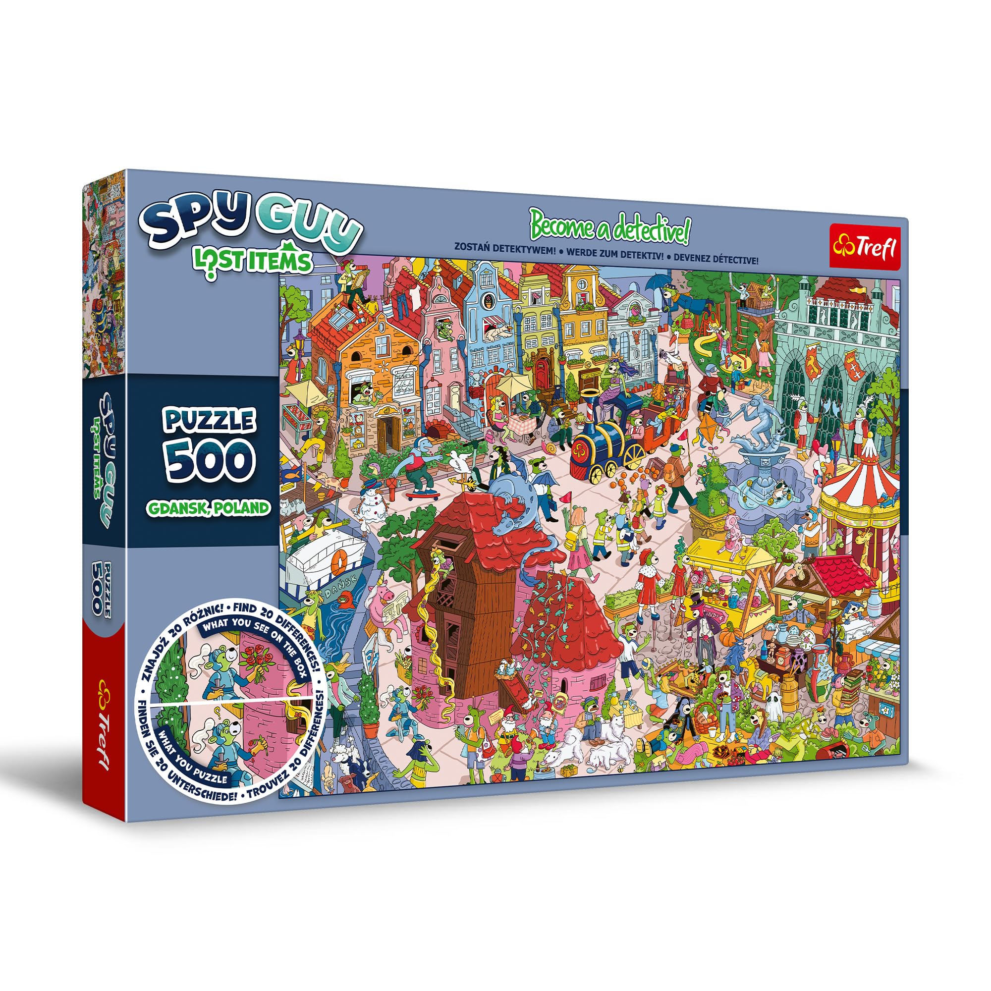 Puzzle 10 Jahre Trefl - Beobachtungs-Puzzle Spy Guy: Zu Hause - 24 Elemente - Finde Alle Gegenstände Aus Dem Rahmen, Buntes Puzzle Voll Mit Details Puzzle Meer Bitte geben Sie im Bestellprozess einfach die gewünschte Lieferadresse ein und wählen Sie das gewünschte Lieferland aus. Die Versandkosten werden dann auf Grundlage des Lieferlandes und des Gewichts der Bestellung berechnet und angezeigt Das Puzzle Spy Guy Lost Item 500 Elemente bewirkt, dass Sie die Rolle eines Detektivs annehmen. Setzen Sie das farbenfrohe Puzzle mit den Abmessungen 480 x 340 mm zusammen, dass das farbenfrohe Europa mit charakteristischen Orten und Denkmälern wie dem Eiffelturm, Kolosseum oder London Eye darstellt Das Puzzle Spy Guy Lost Item 500 Elemente bewirkt, dass Sie die Rolle eines Detektivs annehmen. Aus dem Bild sind auf geheimnisvolle Art und Weise verschiedene Gegenstände verschwunden - vergleichen Sie das Bild mit dem fertigen Puzzle und finden Sie alle 20 Unterschiede Puzzle 500 Teile Spy Guy Lost Items Europa Puzzle-Serie, die bekannte Orte in einer ganz besonderen, gezeichneten Weise präsentiert. Üben Sie die Beobachtungsgabe, das Konzentrationsvermögen und entwickeln Sie die visuelle Wahrnehmung