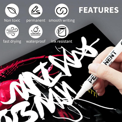 Altaroo 6 Stück Acrylstifte Weiß, Weisser Stift Wasserfest 1mm Große Kapazität, Permanent Marker Weiß, Lackstift Weißer für Schwarzes Papier, Holz, Metall... Geeignet für die transparente und dunkle Materialien, wie Glas, Kunststoff, Keramik, Holz, Leder, Papier, usw., Fade , Abnutzung resistant. All ,innerhalb des Aktions Stift lebendig sehr undurchsichtige Tinte dauerhaft und wasserdicht, wenn sie trocken. edding 750 Lackmarker weiß, Rundspitze 2-4 mm (4-750049 Lackstift Weiß Permanent Marker Fein, Lackmarker, Fineliner Weiß, Stift Weiß Edding 3000 can auf jeder glatten Oberfläche geschrieben werden EXPERT Permanentmarker Weiß | Rundspitze, wasserfest & schnelltrocknend | Sicher ohne Xylol & Toluol | Ideal für Glas, Holz, Metall, Kunststoff | 10er Pack im Kartonetui