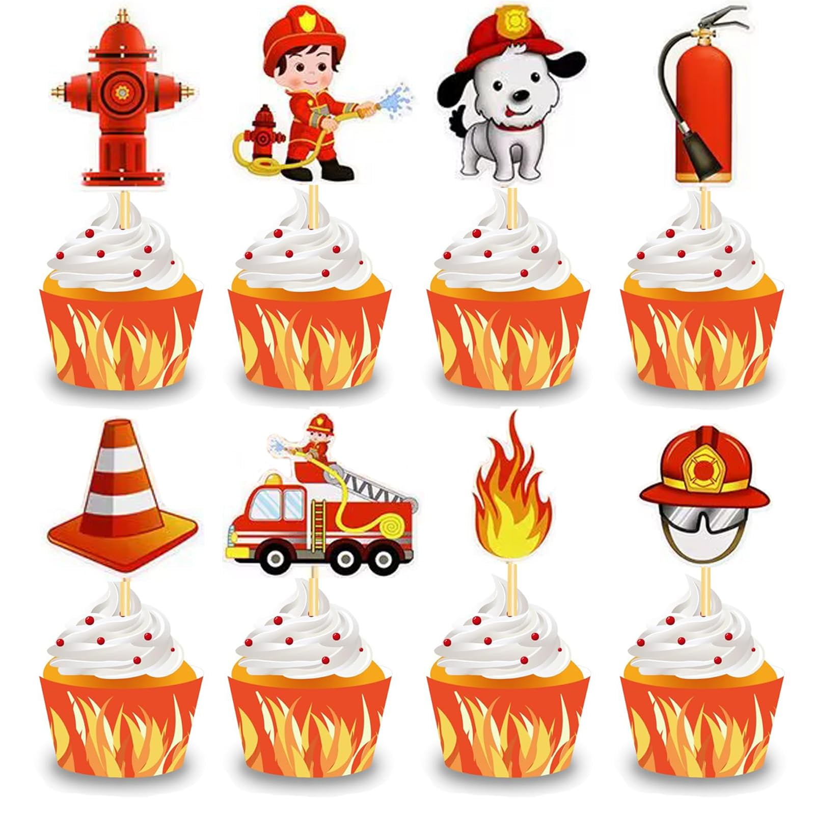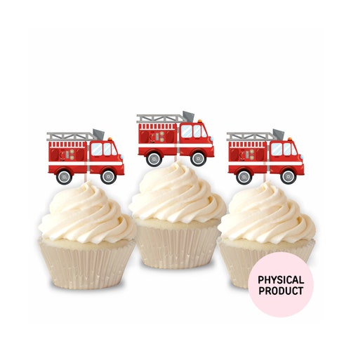 Pack Of 30 Fire Truck Cupcake Toppers Fireman Birthday Cake Decoration Fire Engine Rescue Theme Baby Shower Birthday Party Cake Decorations