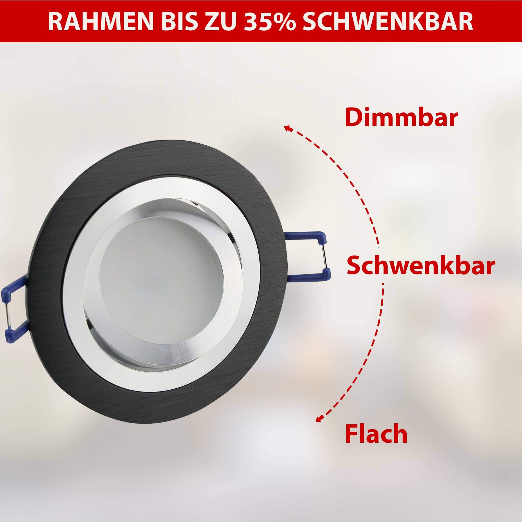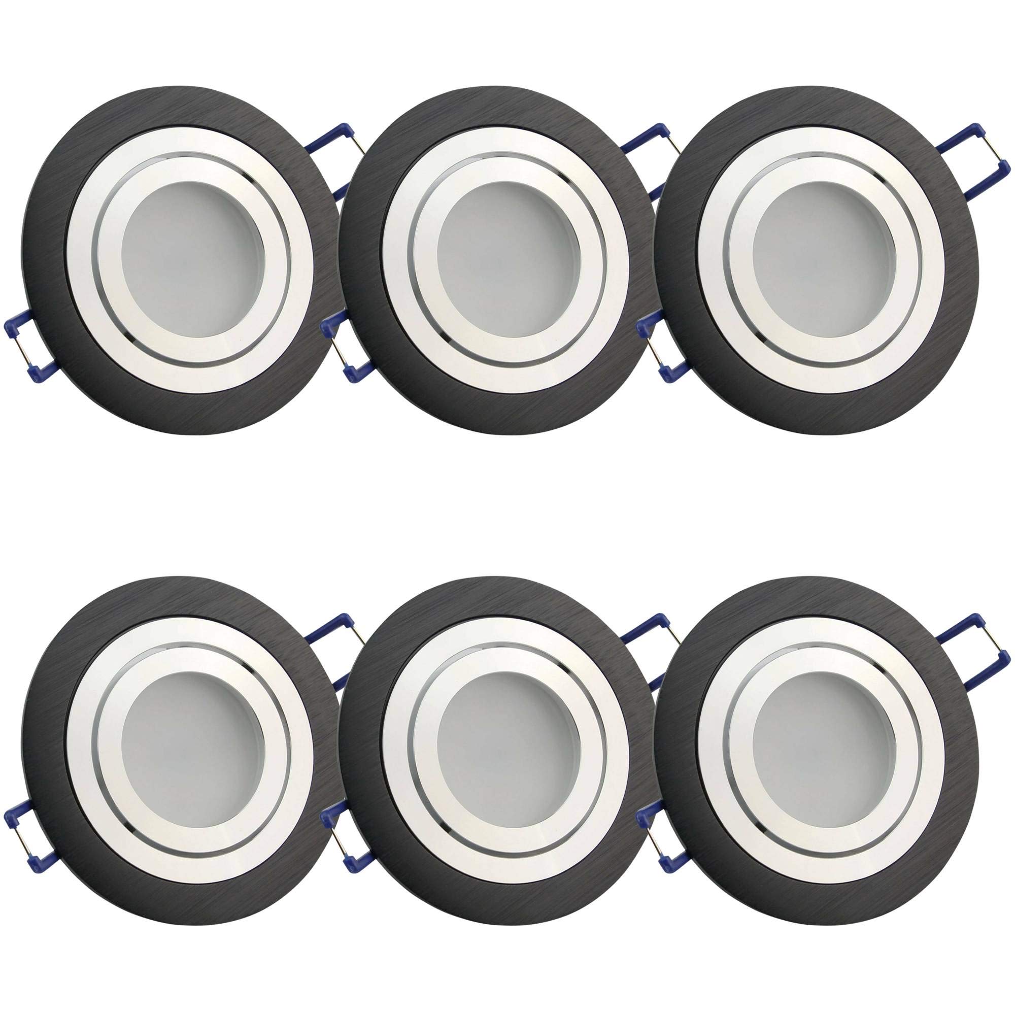 EINFACHE MONTAGE - Schnelle und einfache Montage mittels Federklemmen im vorbereiteten Bohrloch. Jeder Strahler hat einen Rahmen aus stabilem rostfreiem Aluminium. Die Installation ist so schnell wie auch einfach. Led Einbaustrahler 230V – Die 15 besten Produkte i Vergleich - haushalt-und-technik.net LED Deckenspot Rund Schwenkbar Schwarz - LEDHAGEN: Leuchten und Leuchtmittel Material: Aluminium, Keramik, Kunststoff, Schutzklasse: IP20, Bohrloch: Ø 68mm, Abstrahlwinkel: 120°, Schwenkbar: ja, bis 35° , Dimmbar: ja, Einbautiefe: 30-45mm, Leuchtmittel: LED Modul, Montageart: Federklemmen, Betriebsspannung: 230V, Lebensdauer: 35000h DIMMBAR - Individuelle einstellbare Lichtintensität dank intergrirter Dimmfunktion. LED Modul hat einen Korpus aus Keramik, was ihm seine Stabilität gibt. Details: Produkt: LED Einbaustrahler, 6er Set, Form: rund, Leistung: 3W, Farbe: Schwarz, Abmessungen: Ø 85mm Ein Clipverschluss sorgt für einen sicheren Halt des Leuchtmittels im Rahmen. LED Deckenspot Rund Schwenkbar Schwarz - LEDHAGEN: Leuchten und Leuchtmittel 45mm) ermöglicht Installation in ultraflachen Decken. Sechs ultraflache LED Strahler überzeugen durch ihre hochwertige Verarbeitung und besonders hohe Lebensdauer. Jedes LED Spot wird einzeln im vorbereiteten Bohrloch angebracht und mittels Federklammern befestigt und an eine 230V Stromquelle angeschlossen. TRANGO LED Enbauleuchte, 6er Set P65 LED Enbaustrahler 6729P65-068M6KSD Aus Edelstahl Poliert Incl 6x 5 Watt 6000k Tageslicht Weiss Kaltweiss Dimmbar Ultra Flach Led Modul Fuer Bad Dusche Einbauspots Deckenstrahler Deckenlampe Edelstahl Poliert TECHNISCHE DATEN - LED Einbaustrahler, 6er Set| 3 Watt| Lichtfarbe: neutralweiß| Farbe: schwarz | Form: rund | Besonderheiten: Schwenkbar bis 35°, dimmbar | Material: Aluminium, Keramik, Kunststoff | Abmessungen: Ø85mm| Einbautiefe: 30 bis 45mm | Bohrloch: 68mm | Schutzklasse: IP20 | Montageart: Federklemmen | Lebensdauer: 35000h | Abstrahlwinkel: 120° | Betriebsspannung: 230 Volt |Leuchtmittel: LED Modul
