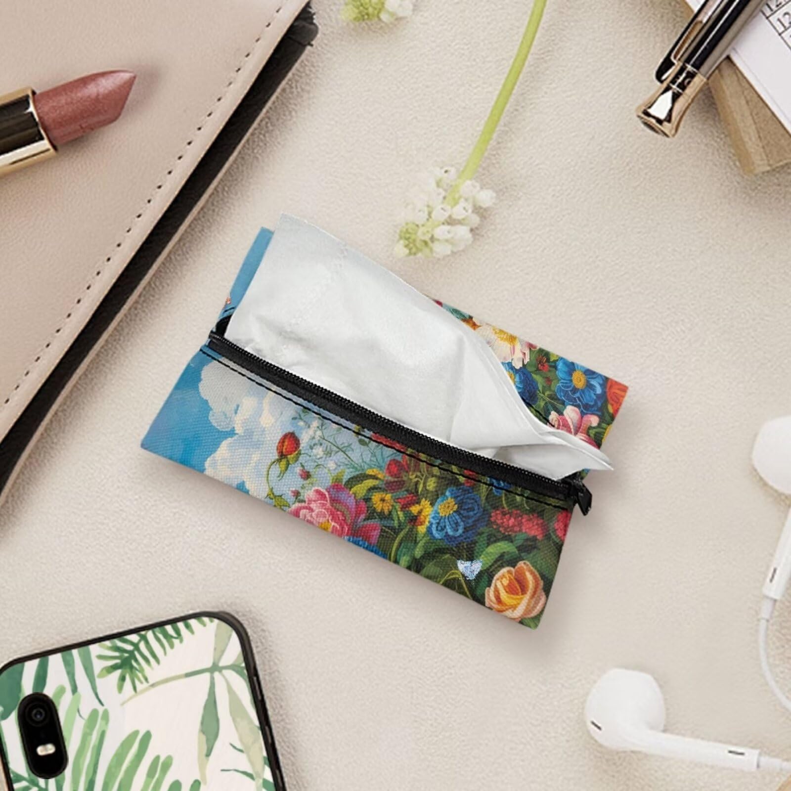 Flashideas Taschentuchhalter Mit Buntem Blumenmuster, Wiederverwendbar, Für Reisen, Münzen, Taschentuchbeutel Für Tasche, Auto, Büro, Zuhause