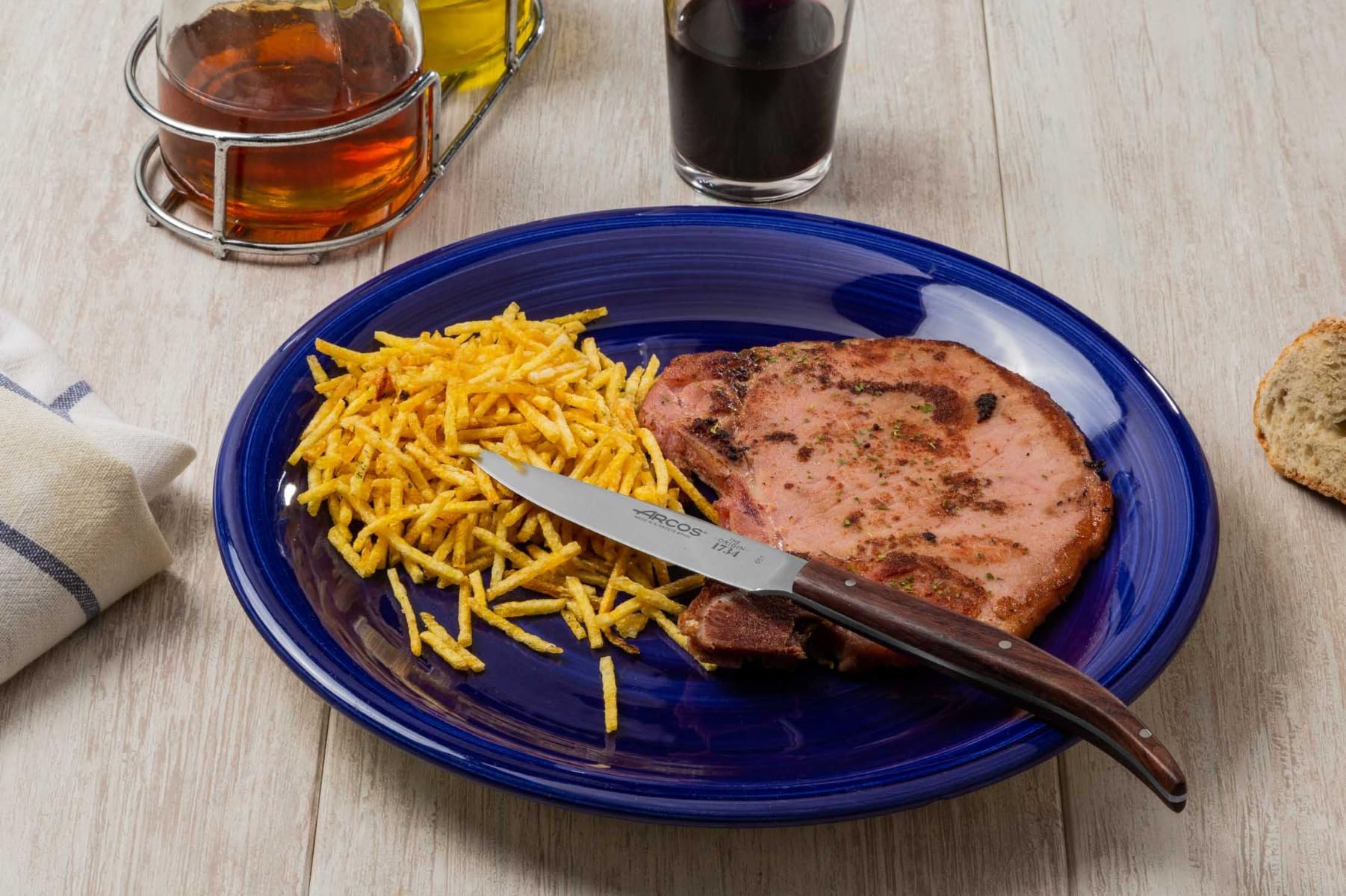 Hervorstechend durch seine besondere Seidenkante. Wird als unverzichtbares Zubehör für jede Küche betrachtet. Fleischmesser 20cm GUSTAV – Präzises Tranchiermesser Kraft, Komfort und Vielseitigkeit. Arcos Gemüsemesser Serie Clara, 13 cm lange Klinge aus NITRUM... Manueller Korkenzieher zum mühelosen Öffnen von Flaschen, mit inbegriffenem Folienmesser. Kompakt und mobil – ideal für Köche., Ein unverzichtbarer Artikel in Ihrem täglichen Leben sowie in der Hotel- und Cateringbranche. Aus der Serie Tables, mit eingebautem Haken. Brooklyn-Serie Entdecken Sie die perfekte Kombination aus Stärke, Komfort und Vielseitigkeit mit unserem Messer. ERGONOMISCHER GRIFF: Brauner Packwood-Griff aus laminiertem Holz, imprägniert mit Phenolharz für Wasserbeständigkeit und Langlebigkeit. Clara-Serie Treten Sie ein in die Welt der Spitzenköche und verbessern Sie Ihre kulinarischen Fähigkeiten Das braune Schneidebrett, ausgestattet mit einem Haken und einer Rille, mit den Maßen von 33 cm x 23 cm, bietet eine praktische Oberfläche, um deine Lebensmittel effizient zu schneiden. Hergestellt aus robustem ABS, ist dieser professionelle Schärfer perfekt geeignet, um deine ARCOS-Messer schnell und effizient zu schärfen. Das graue Schneidebrett, komplett mit einer Rille und einem Haken, mit den Maßen von 17 x 13, bietet eine elegante und langlebige Oberfläche, die perfekt für die Zubereitung von Lebensmitteln ist. Bemerkenswert durch den Griff mit blau gemusterten Tönen. Schärfstab aus verchromtem Stahl mit einem Griff aus Polypropylen, speziell entwickelt, um deine ARCOS-Messer zu schärfen. Ideal, um exquisite Butterlocken zu kreieren. Herbertz Einhandmesser 223412 mit Griff aus braunem Pakkaholz - Grifflänge 12 cm: Herbertz-Einhandmesser mit braunem Pakkaholz und Backen aus Edelstahl Käsehobel von 5 Zoll., Messer-Set für die Küche Brooklyn Die RIVIERA-Serie, in der die Feinheit der abgerundeten Linien mit dem Komfort und der Einfachheit der Handhabung kombiniert wird. Professioneller Taschenschärfer für Messer. Schärfstab aus verchromtem Kohlenstoffstahl mit Griff aus Polypropylen, speziell entworfen, um deine ARCOS-Messer zu schärfen. Entfernt nahezu jede Fischgräte beim Zubereiten von Filet oder anderen Fischgerichten. Vielseitiges Schneidebrett: Hacken und Servieren von Lebensmitteln in der Küche und am Tisch., Einzigartig und praktisch. Käsehobel von Arcos (5''). 1 Clara-Serie 2 Natura-Serie 3 Universal-Serie 4 Riviera-Serie 5 Brooklyn-Serie Fleisch Messer Black Ranch Select Fleischmesser 24 Cm | Dunkle Edelstahlklinge & FSC® – Asado Pampa Shop Das Schärfste Messer Der Welt Perfekt für Hobbyköche und Profis, spülmaschinengeeignet für einfache Reinigung. Küchenschere aus der geschmiedeten Serie, hergestellt aus Edelstahl. Natura-Serie Ein Muss für die anspruchsvollsten Köche. Das Arcos-Schneidebrett mit eingebauter Rille ist das ideale Küchenwerkzeug zum Schneiden, Hacken und Servieren köstlicher Gerichte. Schärfstab mit 9 Zoll., Unsere einzigartigen Stücke vertreiben wir in über 70 Länder auf der ganzen Welt. Ein unverzichtbares Werkzeug unter den professionellen Utensilien. Geflügelschere mit 10 Zoll.,