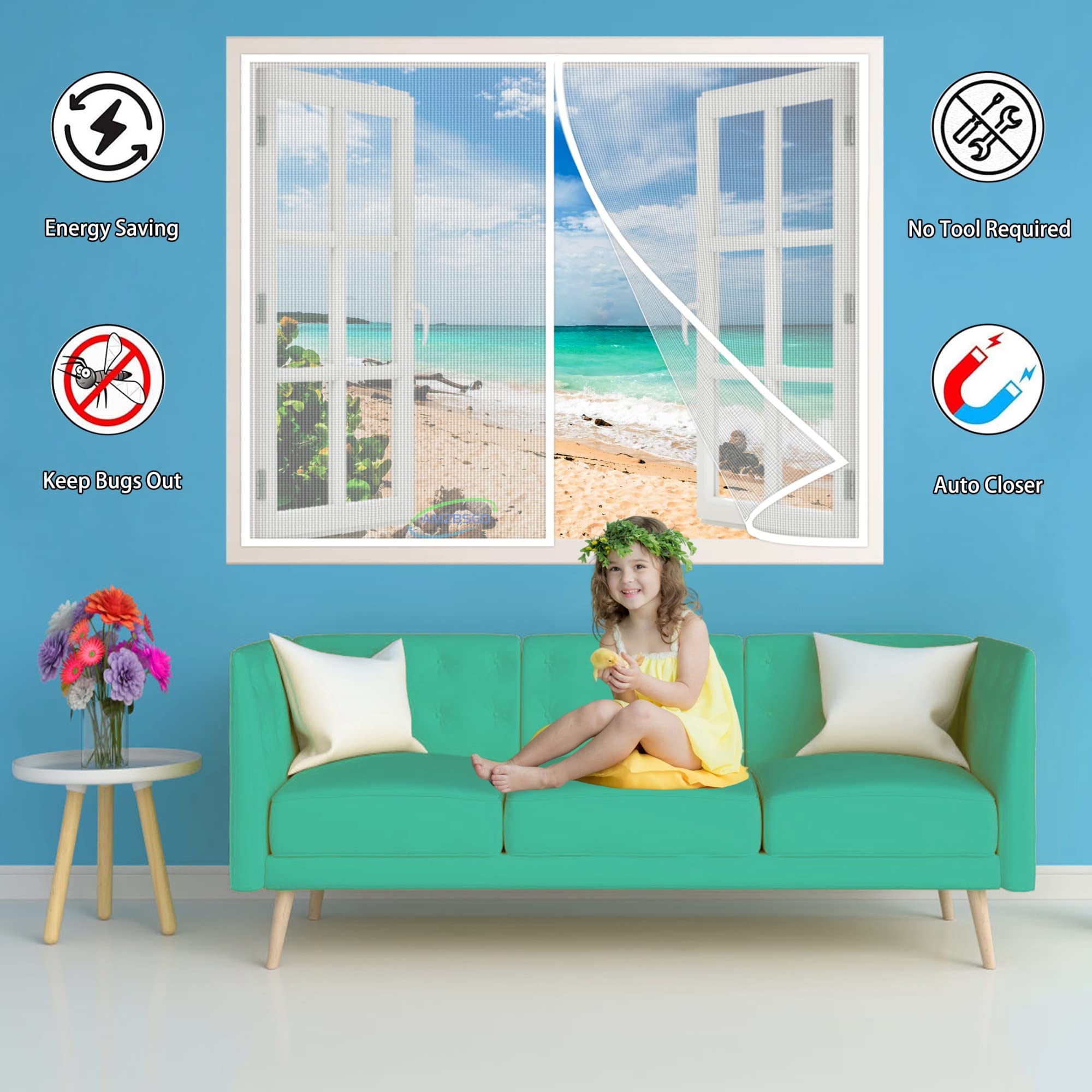 Fliegengitter Fenster Magnet 65x130cm,Moskitonetz Fenster Mit Klettband, Insektenschutz Fenster Ohne Bohren, Ideal Für Balkonfenster Wohnzimmerfenster Und Terrassenfenster,Beige