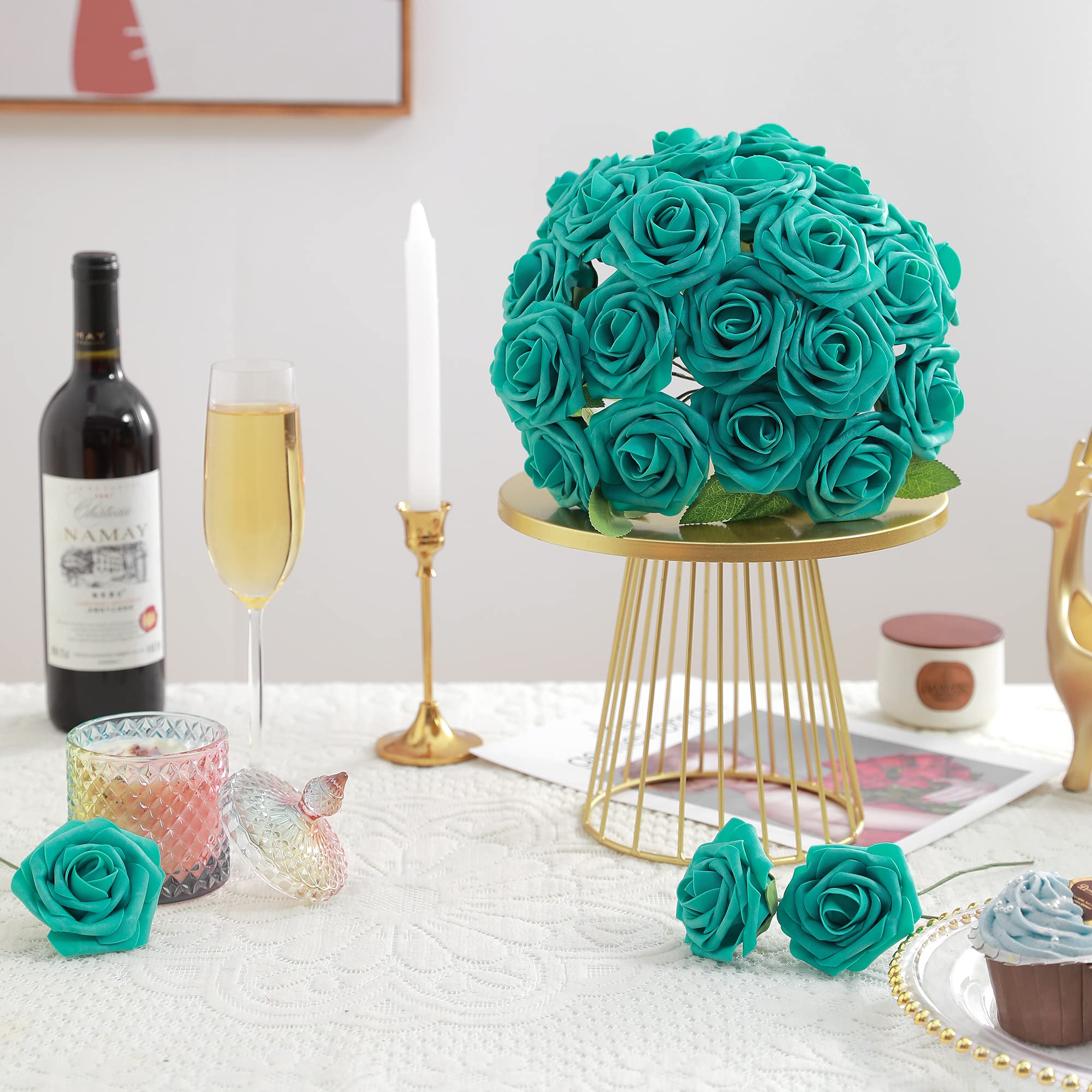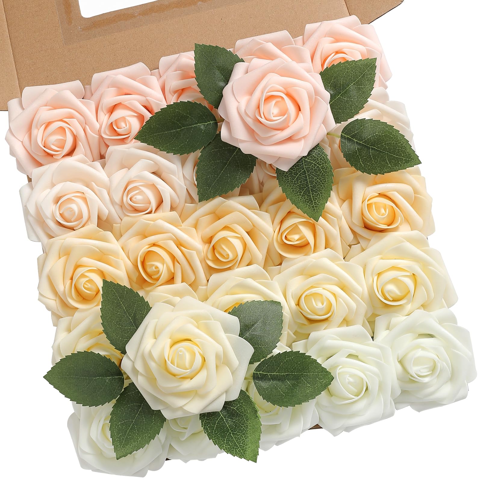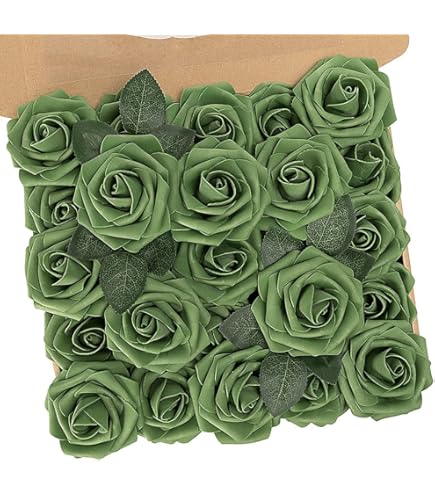 Floroom Künstliche Blumen, 25 Stück, Echt Aussehende Waldgrün, Ombré-Farben, Schaumstoffrosen Mit Stielen Für Selbstgemachte Hochzeitssträuße, Brautparty, Tafelaufsätze, Partytische, Heimdekorationen