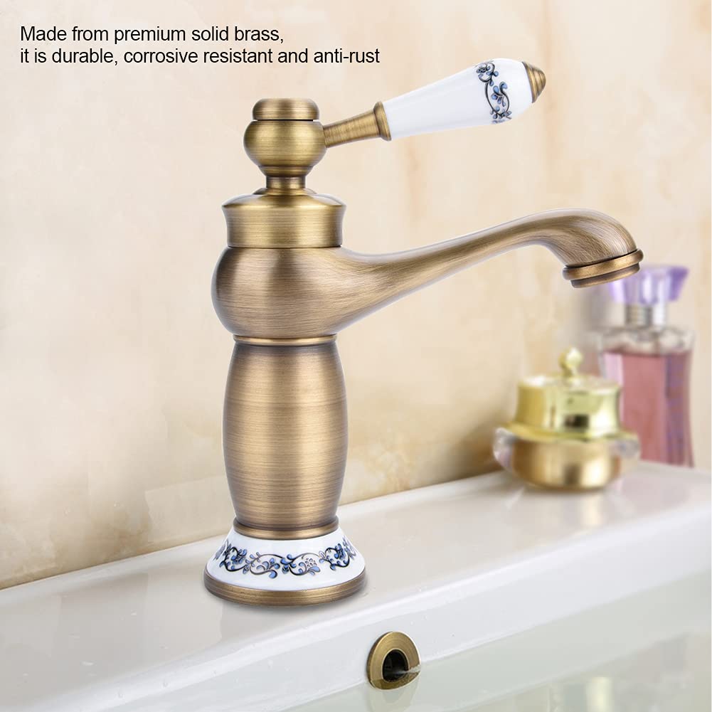 Oumefar G1/2 Keramik Antik Messing Wasserhahn Waschbecken Wasserhahn Vintage Flower Keramik Waschbecken Wasserhahn Messing Einhand Heiß Kaltwasser Wasserhahn Für Badezimmer(Weiße Farbe
