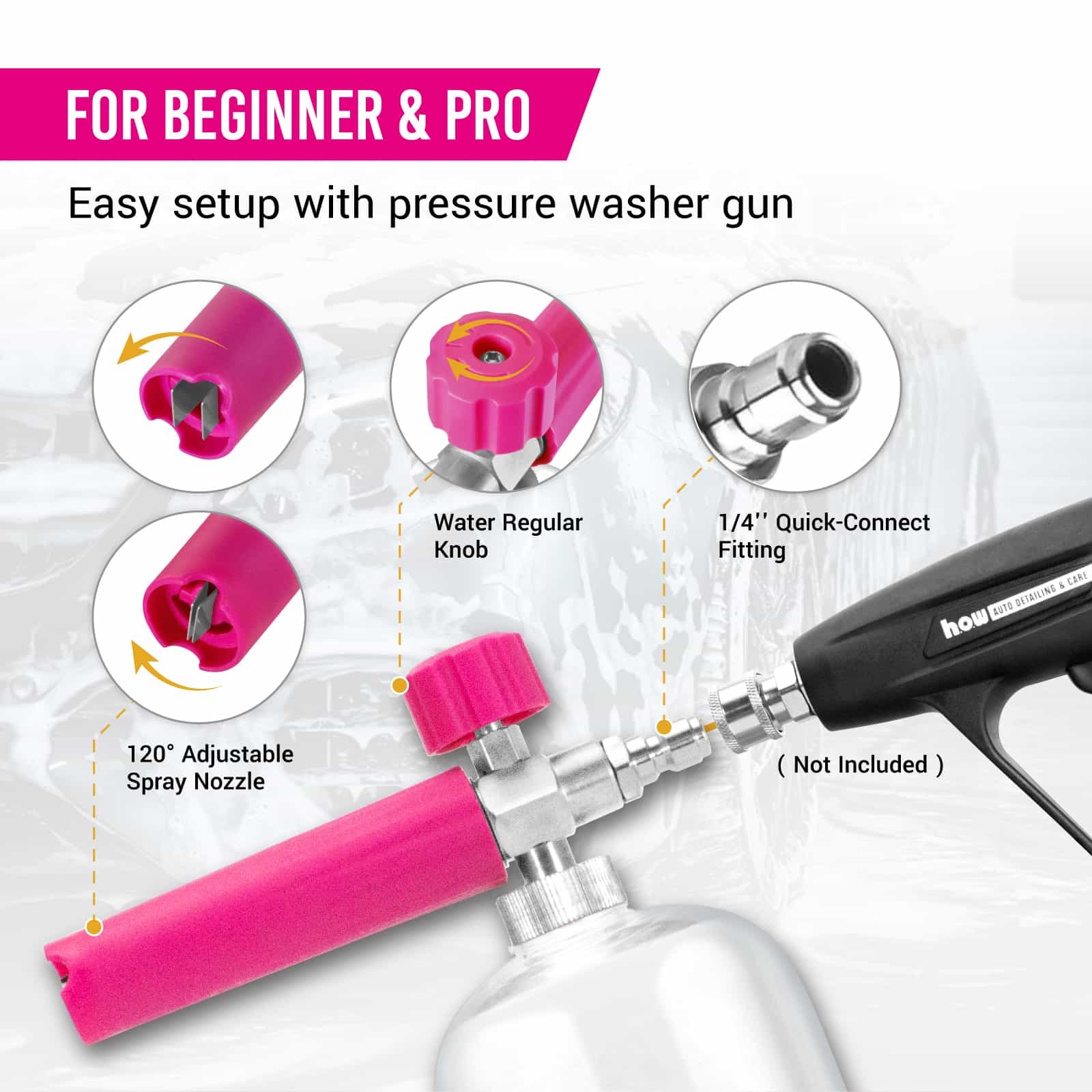 Akku Schaumsprüher Auto AIM Tools Snow Foam Lance Foam Cannon Adjustable Spray Nozzle 1 L Hydroboost High Pressure
