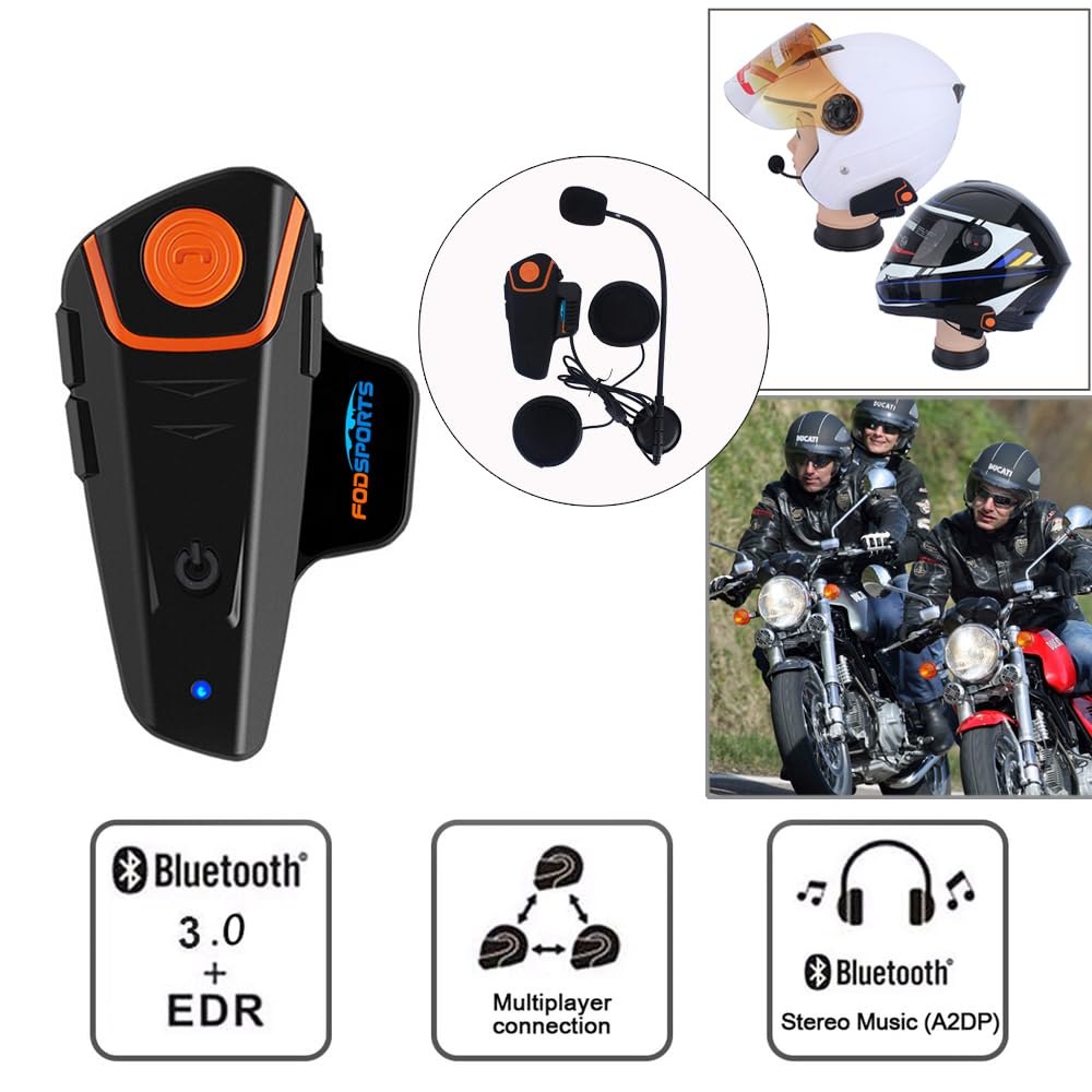 Kontrolle Handy-Musik durch AVRCP: vorwärts, rückwärts, spielen, pause ., ., Automatische Umschaltung zwischen Bluetooth-Handy, Gegensprechanlage, Stereo-Musik. Hinweis: Schalten Sie das Bluetooth von Ihrem Mobiltelefon / Gerät aus, wenn das Paar zwischen 2 Gegensprechanlagen, wenn es vorher angeschlossen ist, nicht auf Fahrradhelm oder Helme angewendet werden kann, die die Ohren nicht abdecken können (kein Platz für Kopfhörerinstallation) Qurora Premium wasserdichtes Bluetooth Intercome für Motorrad -- Wasserdichtes Design, keine Sorgen mehr beim Fahren im Regentag -- Sie können über Bluetooth Intercom-Funktion mit Ihren 2 oder 3 r Partnern frei sprechen (Aber nur 2 Fahrer Gegensprechanlage zur gleichen Zeit) in 1000m Entfernung (offener Raum) -- Wenn du es mit deinem Walkie Talkie mit einem passenden Kabel verbindet (das Walkie-Talkie und das ist NICHT vorgesehen), dann kannst du mit 4 oder mehr Reiterkollegen reden, die auch Walkie Talkie haben, die Stimme wird über Kopfhörer übertragen Mikrofon von Bluetooth Motorrad Helm Gegensprechanlage. Audio-Kabel zum Anschluss von MP3, GPS, Walkie-Talkie und so weiter. Intercom Motorrad Fodsports BT-S2 Motorrad Headsets Bluetooth Motorradhelm Intercom Wasserdicht Gegensprechanlage Wireless Sprechanlage Helm Headset Mit 1000m, GPS, FM Radio, MP3 Player Outdoor Walkie Talkie Mit DSP-Echounterdrückung und Rauschunterdrückungstechnologie ist die kristallklare Sprachqualität in hoher Geschwindigkeit garantiert. ★Button-Panel ist wasserdicht und sonnig, während das Design ist langlebig.Audio-Kabel zum Anschluss von MP3, GPS, Walkie-Talkie und so weiter ★Rufen Sie an, rufen Sie die Antwort an, rufen Sie ab, rufen Sie auf. ★Genießen Sie die Handy-Musik über A2DP oder verbinden Sie GPS. ( Für die Fahrer-Quantität unterstützt, hängt es von der Walkie-Talkie selbst) Schlüsselspezifikation: --Bluetooth Version: 3., 0 + EDR --Frequenz: 2., 4GHz --Unterstützt: A2DP und AVRCP --Unterstützte Bluetooth-Profile: Bluetooth Headset und Freisprechanlagen mit automatischer Erkennung --Betriebsbereich: Bis zu 10m für Mobiltelefone --Batterie Typ: Nachladbares Lithium-Polymer 450mAh --Stand von: Bis zu 300 Stunden --Talkzeit: Telefon bis zu 10 Stunden --Intercom bis zu 8 Stunden --Charging Zeit: 3hours --Netzadapter: DC5V 500mA (optional) Paket enthalten: --2 x Headset --2 x Kopfhörerclip mit Befestigungsschrauben --2 x Schraubendreher --2 x Klettverschluss --4 x Klett (auf dem Helm) --2 x Audiokabel --2 x Reise-Ladegerät ★Mit DSP-Echounterdrückung und Rauschunterdrückungstechnologie ist die kristallklare Sprachqualität in hoher Geschwindigkeit garantiert. Bike-to-Bike-Gegensprechanlage für Fahrer & Beifahrer oder zwei separate Bikes bis zu 800-1000 Meter. EJEAS V6C Referee Bluetooth Intercom, 850 mAh Full Duplex 1200 m BT S2 Pro Intercom-Headset 1000M Motorrad Offroad-Motorrad Bluetooth-Kommunikationssystem. Jetzt bestellen