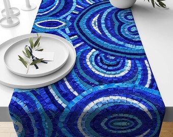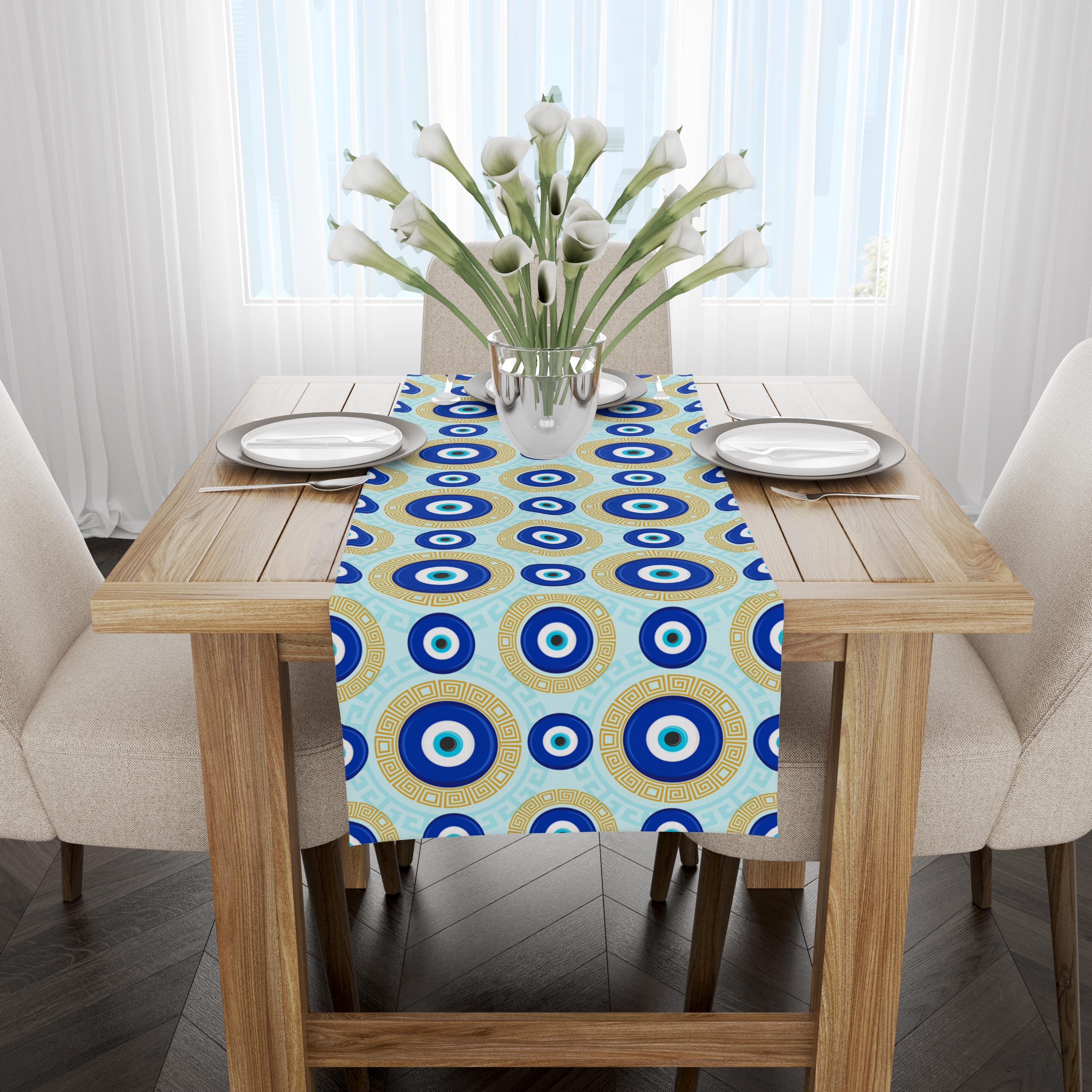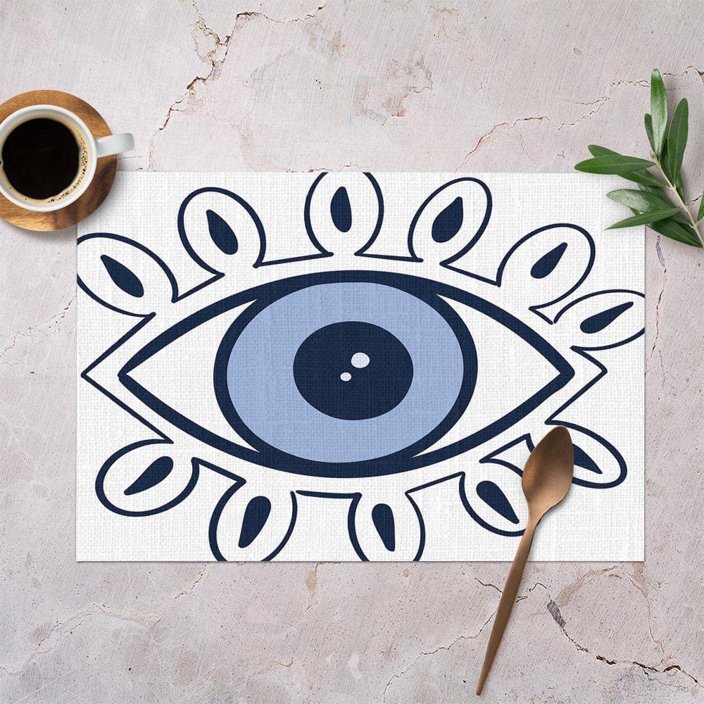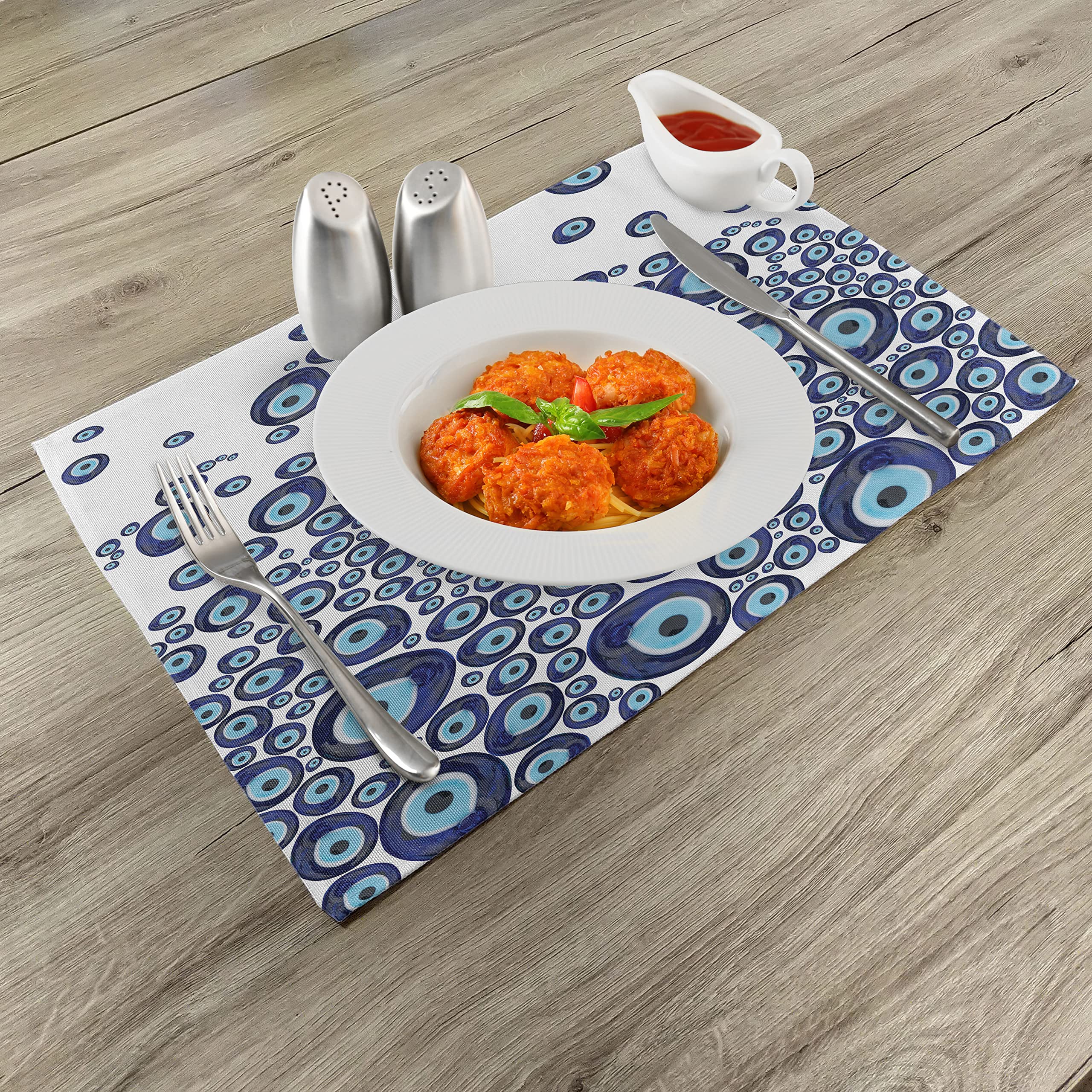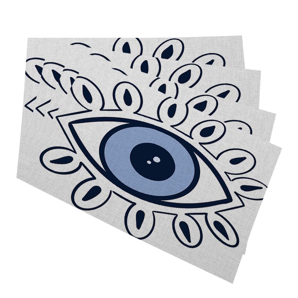 ABAKUHAUS Evil Eye Place Mats, Turkish Folklore Pattern Occult Symbolism Theme On Level Backdrop, Tiscjdeco Made Of Colour-Resistant Fabric For Dining Room And Kitchen, Dark Blue, Light Blue, Black