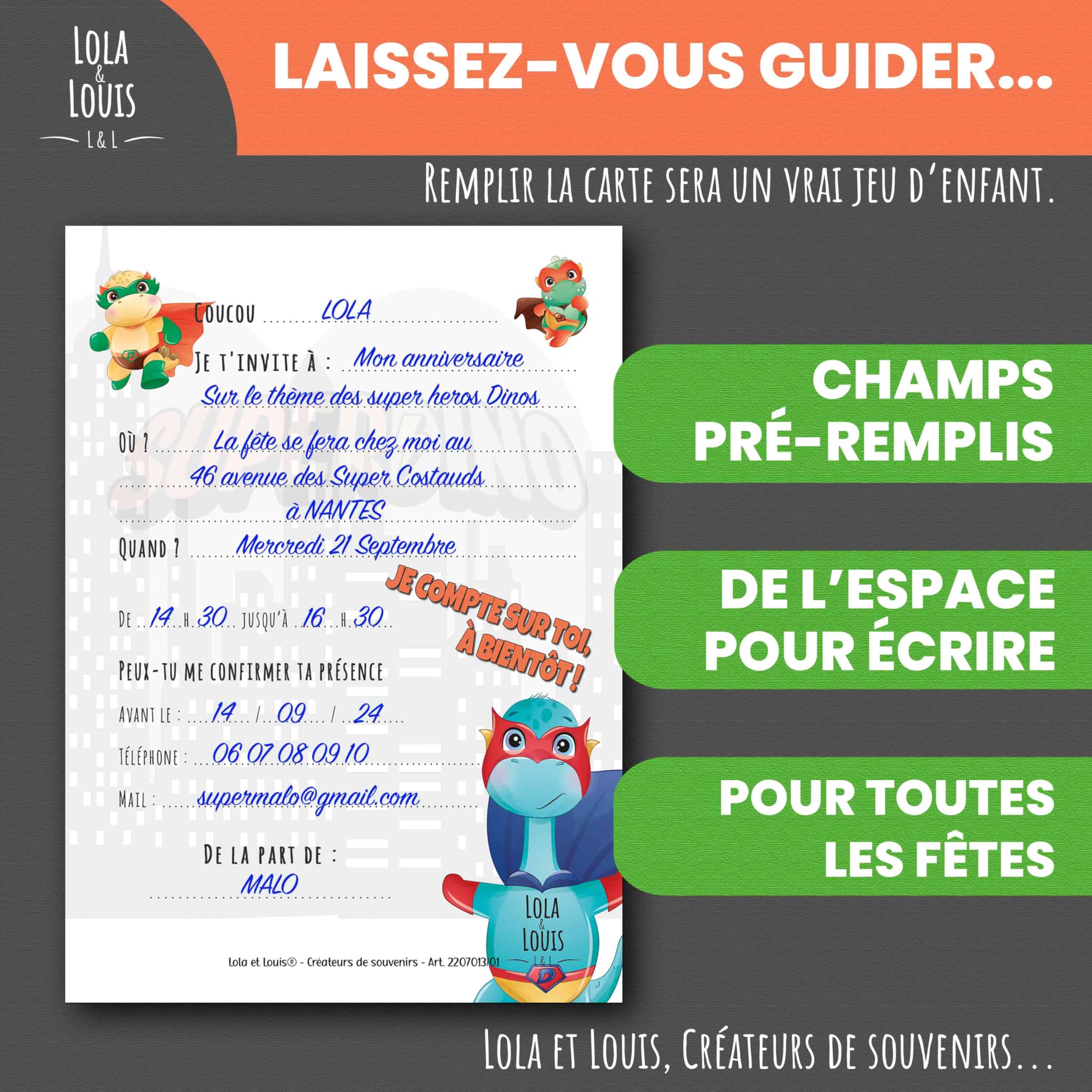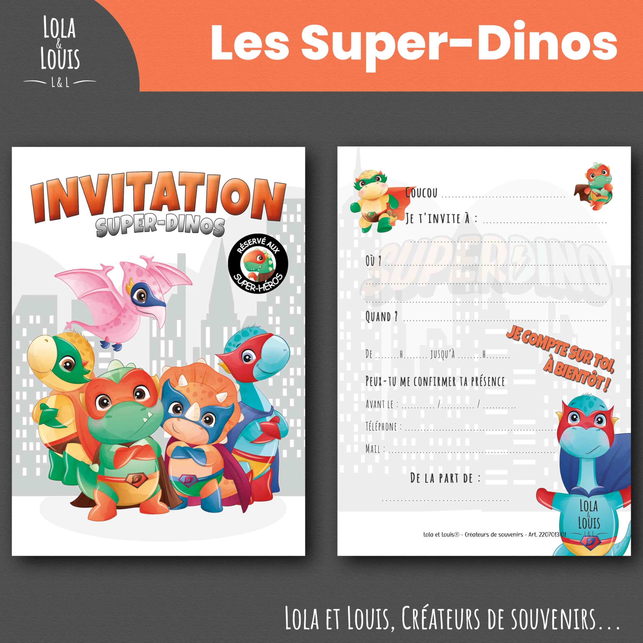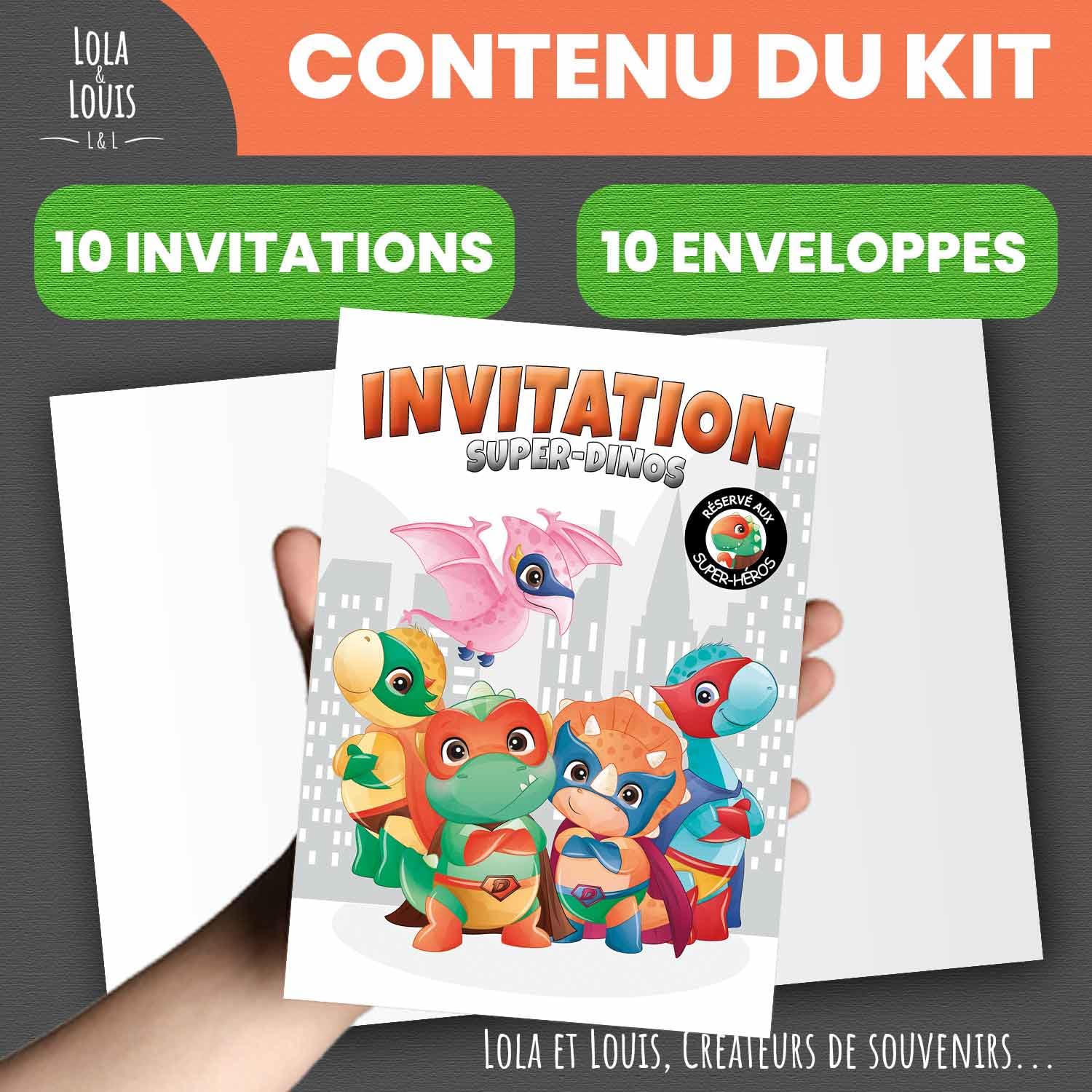 10 Invitations In French With Envelopes For Birthday Party Or Similar - Dinosaur Superheroes Set For Boys And Girls - Creative And Participant Set For Children - Lola And Louis