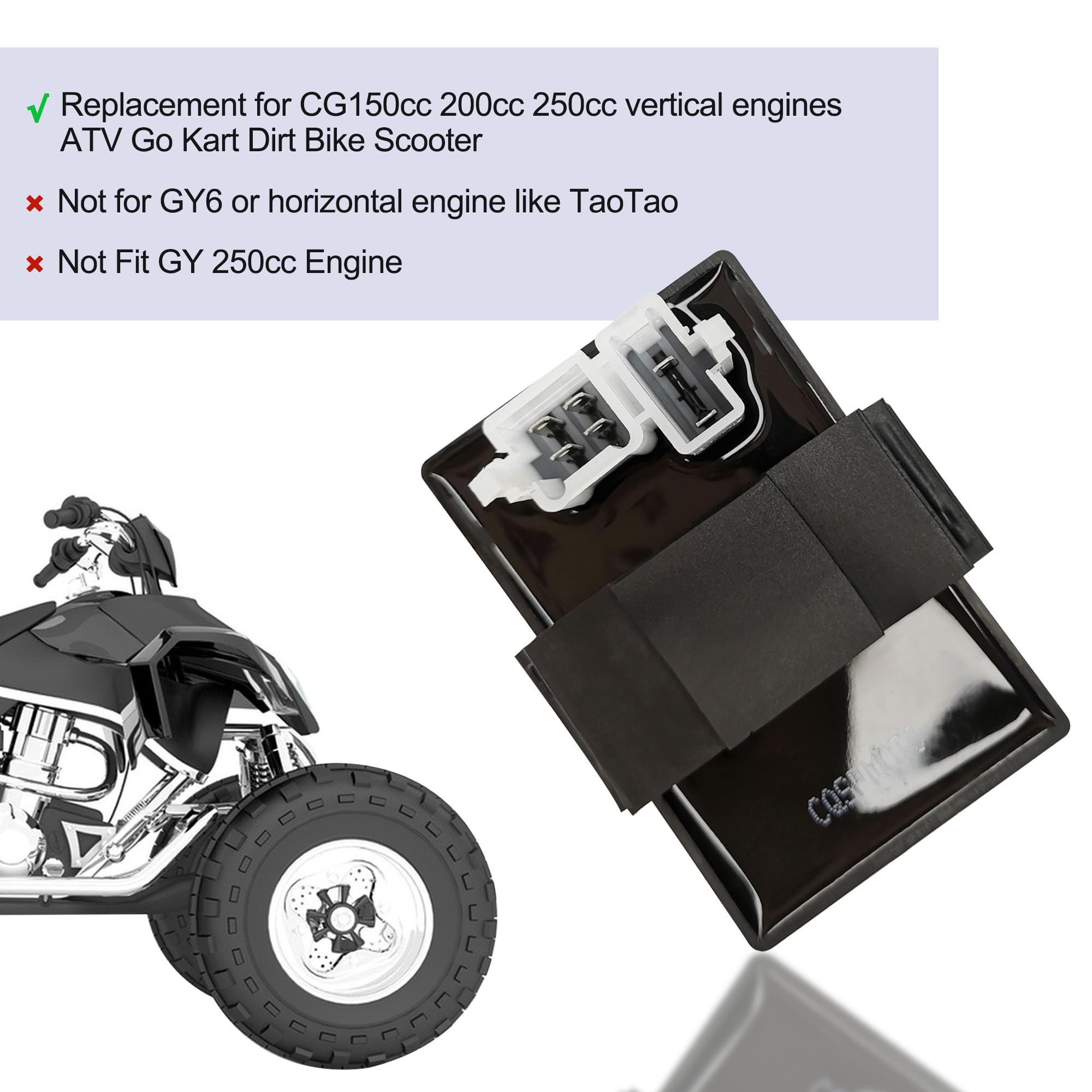 Passend für CG 125cc 150cc 200cc 250cc ATV Dirt Bike Go Kart, nicht für GY6 oder horizontale Motoren (nicht Ersatz für MTD 2006 Quad GV 125 2007) Der Artikel passt für Kazuma Falcon 250, Kazuma Dingo 250 und andere CG 125cc-250cc Vertikalmotoren Bitte stellen Sie sicher, dass die Anschlüsse mit Ihrem Originalstecker verbunden sind Nicht geeignet für GY 250 cc Motor, nur passend für CG150 cc 200 cc 250 cc Vertikalmotor DC CDI Gleichstrom CDI Box für Kymco GY6-125 Roller Teile Gy6 Cdi Box CDI Box 6 Pin AC/DC Ignition CDI Box For Gy6 Cg 125cc 150cc 200cc 250cc ATV Quads Moped Dirt Bike Kart Motorcycle Adjustable Cdi Box DC Box 6 Pin elektronischer Zünder kompatibel mit Motorrädern CG150cc 200cc 250cc Vertikalmotor ATV Quad Go Karts