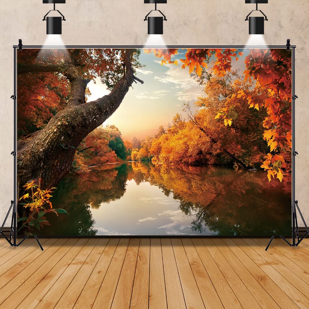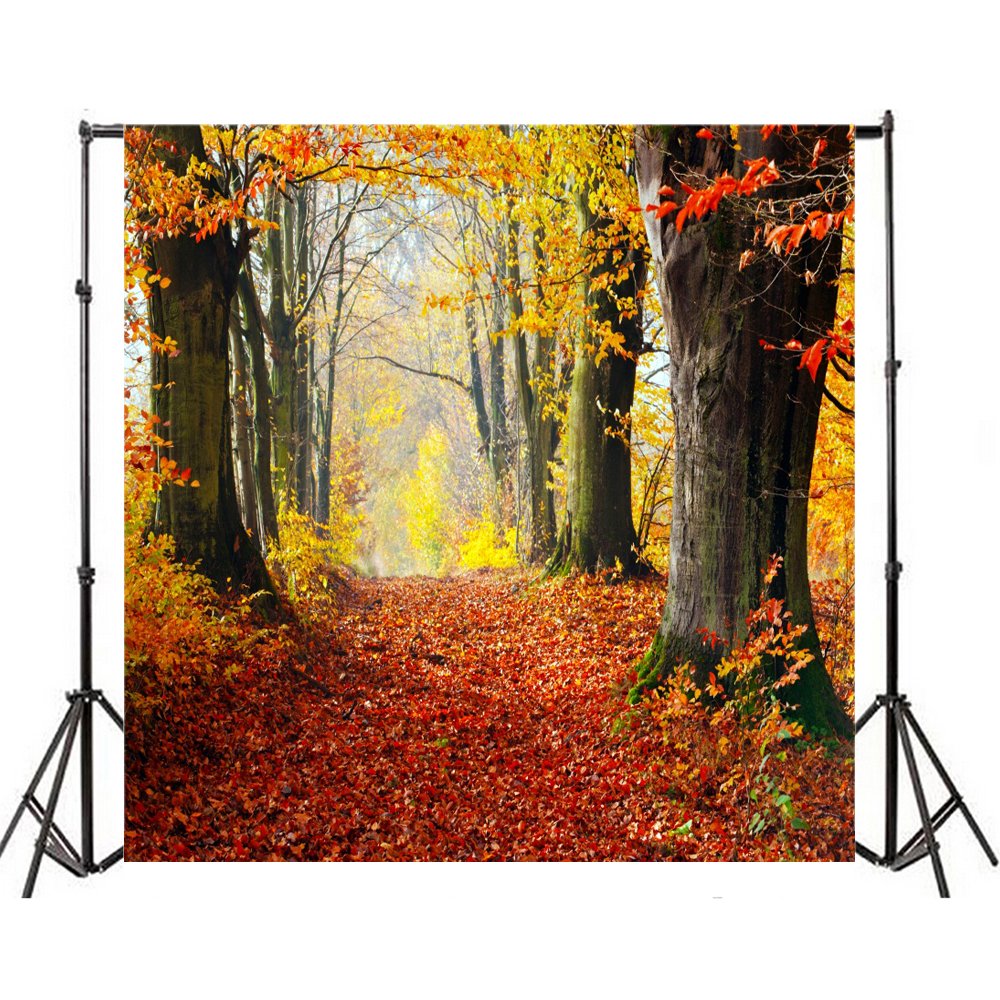 YongFoto 1,5x2,2m Foto Hintergrund Herbst Landschaft Straße Rot