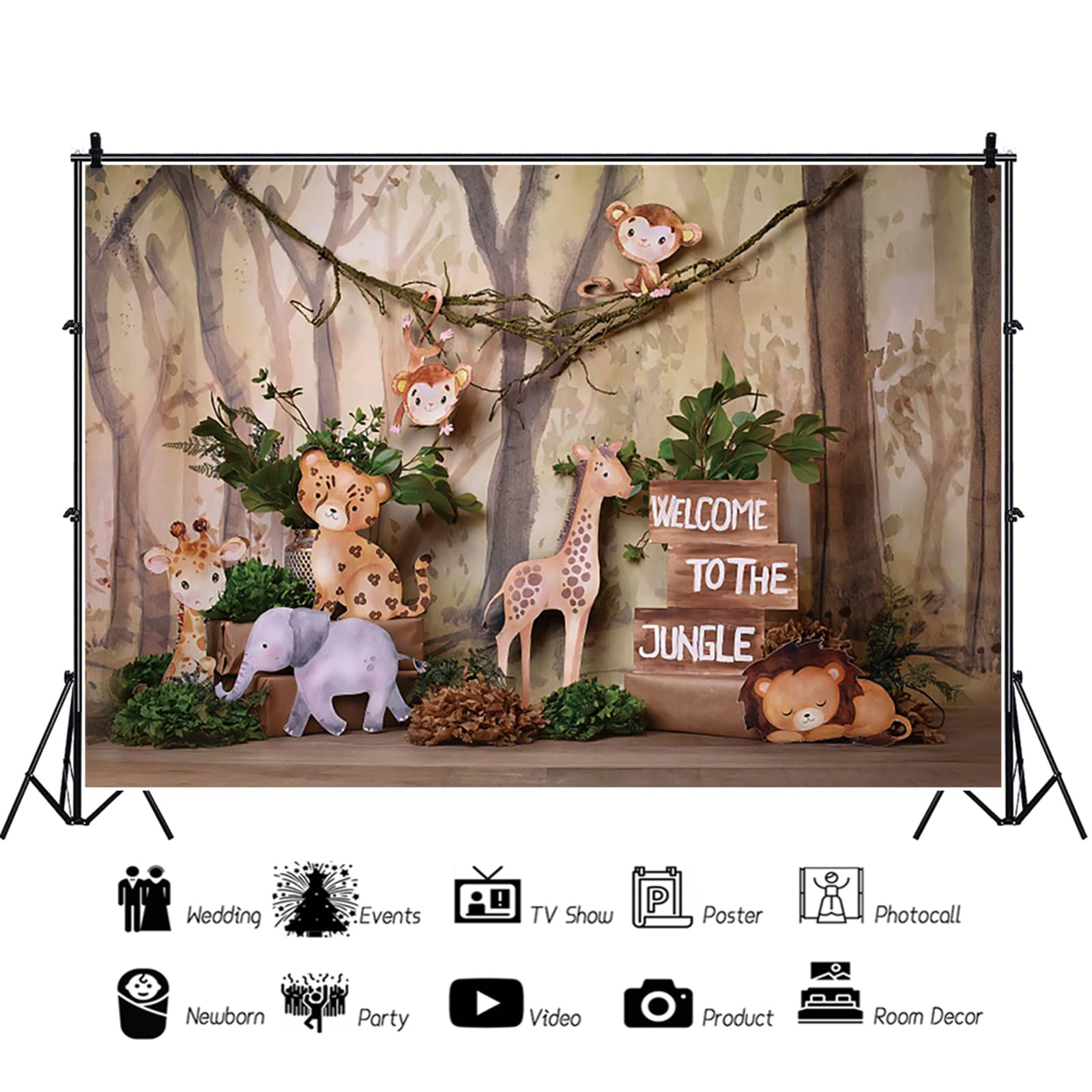 Zoo-Cartoon-Illustration mit Safari-Tieren Elephant, Giraffe, Löwen [Warme Tipps]: Dieses Hintergrundbanner wird gefaltet geliefert, bitte rollen Sie es fest mit einer Tube auf und warten Sie 3-4 Tage, um die Falten zu entspannen. Über die Installationsmethode: Methode 1: Befestigen Sie es mit Klebeband oder Reißzwecken an der Wand. Über Service: Wenn Sie Fragen haben, zögern Sie nicht, mich zu kontaktieren und ich werde innerhalb von 24 Stunden antworten und mein Bestes versuchen, um Probleme zu lösen. Hinweis: 1., Nur ein Hintergrund ist enthalten, ohne Halterung., 2., Ohne Stanzringe auf Hintergrund., 3., Aufgrund unterschiedlicher Monitoreinstellungen und Lichtverhältnisse kann es zu leichten Farbabweichungen kommen., 4., Vermeiden Sie Sonneneinstrahlung und Regen bis Farbe verblassen, wenn Sie im Freien verwendet werden., 5., Bitte haben Sie Verständnis dafür, dass bei der Umstellung auf Füße ein geringfügiger Fehler auftritt, da das Produkt gemäß der Einheit Meter produziert wird., Material: Vinyl., 1., Der Hintergrund besteht aus dünnem Vinyl, das nicht gewaschen werden kann, aber der Fleck mit einem feuchten Tuch abgewischt werden kann. Methode 2: Hängen Sie es mit den robusten Federklemmenclips an den Ständer auf. Um ein Verblassen der Farbe zu vermeiden, bewahren Sie den Hintergrund bitte im Schatten auf., 2., Es ist ungiftig, Kinder können es auch berühren., Über Fotografie: 1., Das Muster ist im Hintergrund gedruckt, sodass es nicht reflektiert., 2., Der Aufnahmeeffekt wird mit Fotoausrüstung besser sein. Bei Bedarf bügeln Sie bitte die Rückseite mit Dampfbügeleisen bei niedriger Hitze. Size: The size of this safari birthday party photo banner is 1.85 x 1.10 m (6 x 3.7 feet). This is enough to take photos or play games with friends and family Fotohintergrund Mit Safari-Tieren, Motiv Methode 3: Hängen Sie es mit Schwalbenschwanzclips und Seil auf den Ständer auf.