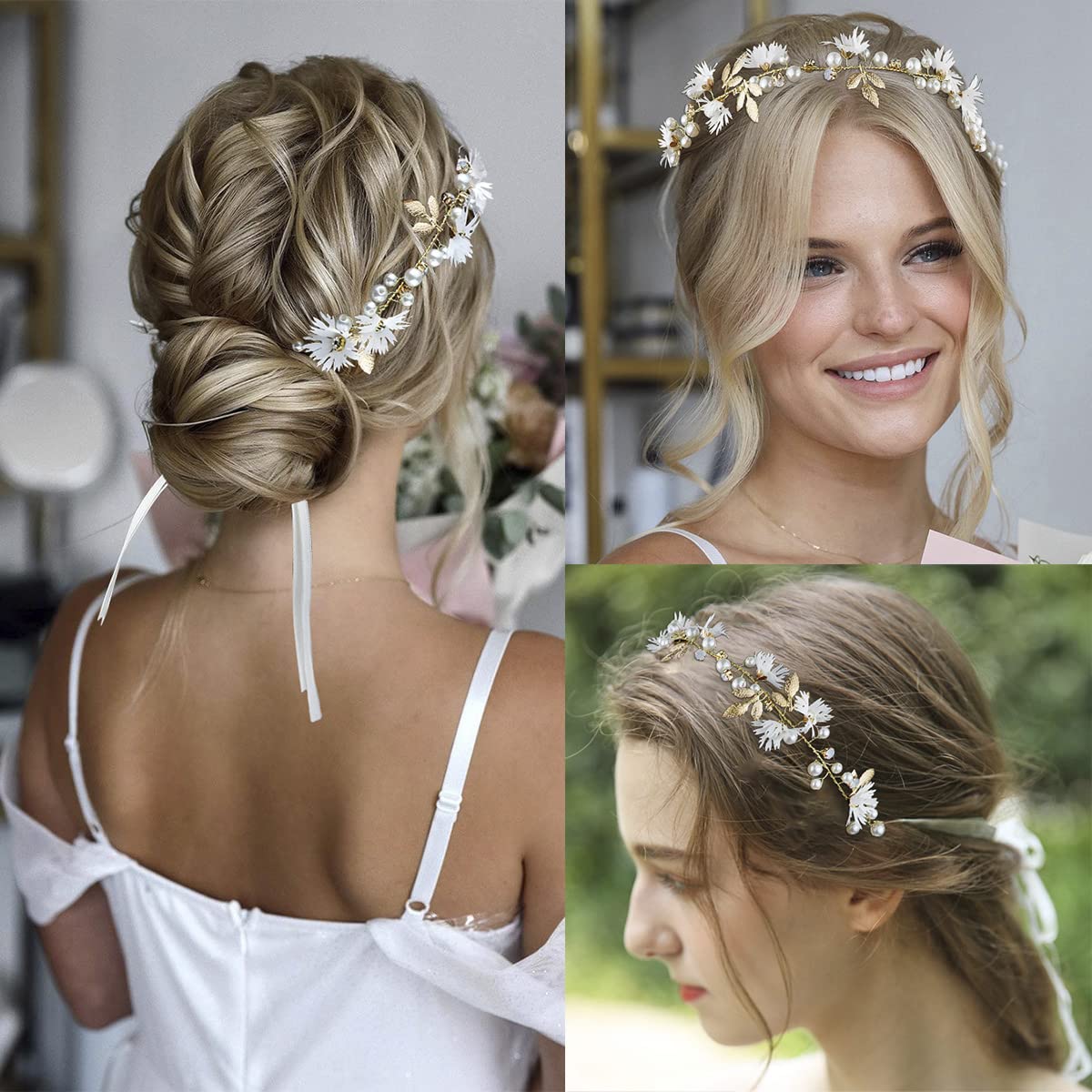 【Langlebiges Material】 Diese schönen Haarreifen und Haarnadeln sind aus hochwertigem Legierungsmetall, künstlichen Perlen, Rhinetones, nicht leicht zu brechen und zu verblassen. Der Kopfschmuck und die Haarnadeln sind exquisit gestaltet und aus hochwertigem Material, sie sind zart und Vintage, perfekt für Hochzeiten, Abschlussbälle und Partys. Wenn Sie sie tragen, können Sie eleganter und charmanter aus der Menge sein. Haarreif Silber Frühling Böhmischen Mädchen Braut Perle Haar Kopfschmuck Blume Kranz Braut Girlan Kopf Hoop Stirnbänr Haar Schmuck Kinr Geschenke Braut Accessoires Hochzeit Seide Blumen mit Blume Blumen-Stirnband (Sold in a single piece) US$ 11.00 favor (4 Manuelle Messung, bitte erlauben Sie geringfügige Fehler bei der Größe. Sie erhalten: Sie erhalten 1 exquisites Kopfstück und 6 Stück Perlen-Haarnadeln, das Kopfstück ist 29 cm lang und es gibt ein Band an jedem Ende des Kopfteils, wodurch es für die meisten Kopfgrößen verstellbar ist. Spezifikationen: Material: Strass, künstliche Perle, Metalllegierung. 【Zartes Design】 Der Kopfschmuck ist mit Blättern, Blumen, Perlen und Strasssteinen gestaltet, wodurch der Kopfschmuck glänzender und auffälliger wird, die Körper des Kopfschmucks und der Haarnadeln sind gut verdrahtet, was ihn Vintage-und exquisiter macht. Länge: 6,8 cm bis 8 cm., Farbe: siehe Abbildung., Lieferumfang: 1 x Kopfbedeckung., 6 x Haarnadeln. Rosa weiße Blume Schleier Stirnbänr Armband Set Perle Kristall Haar Hand Reben Schmetterling Band Hochzeit Gold Haar Zubehör 7-teiliges Blumenmäden Haarkranz Set mit Blatt, Blumen, Perlen und Strass Haarband für Braut Blumenmäden Haarreif, Diadem, Krone, 1 Haarband mit 6 Perlen Haarnadeln Haaraccessoires
