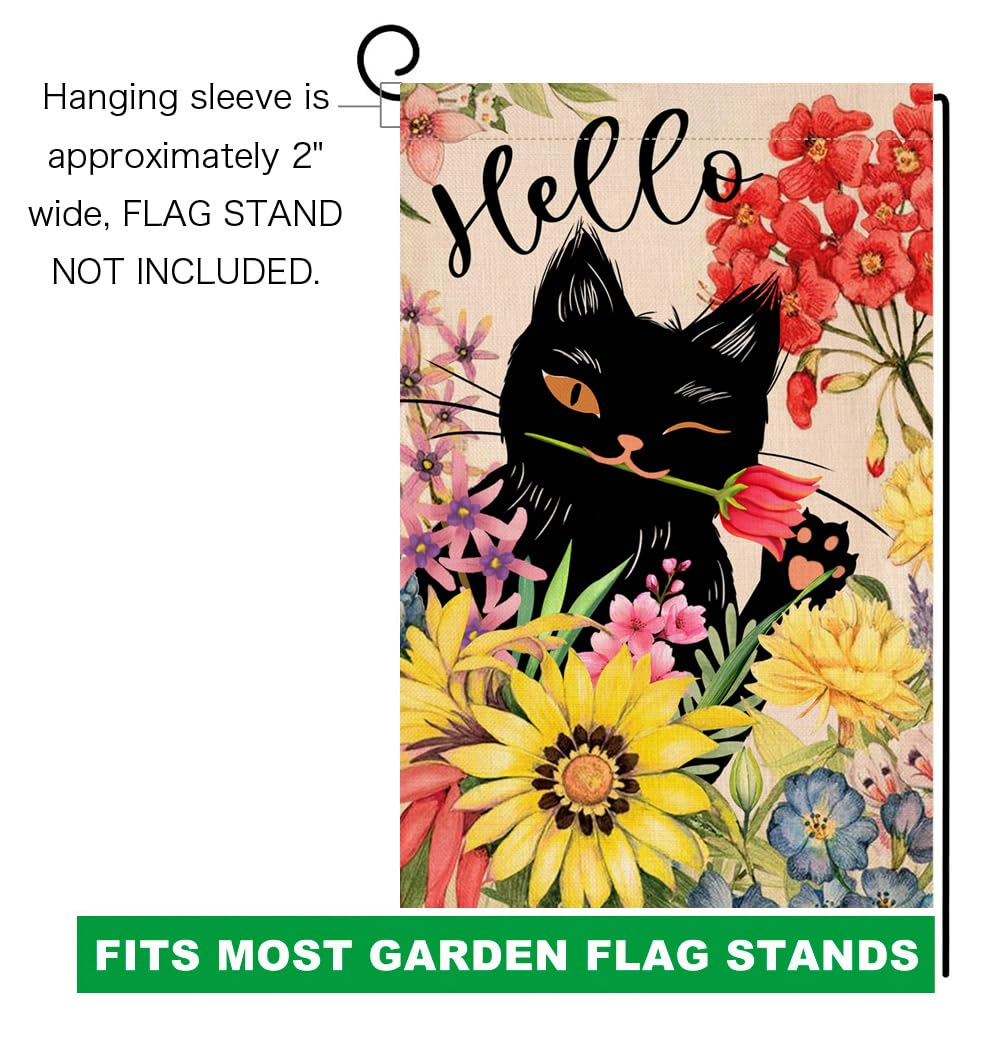 BLKWHT Gartenflagge Mit Frühlingskatze Und Hortensien, Vertikal