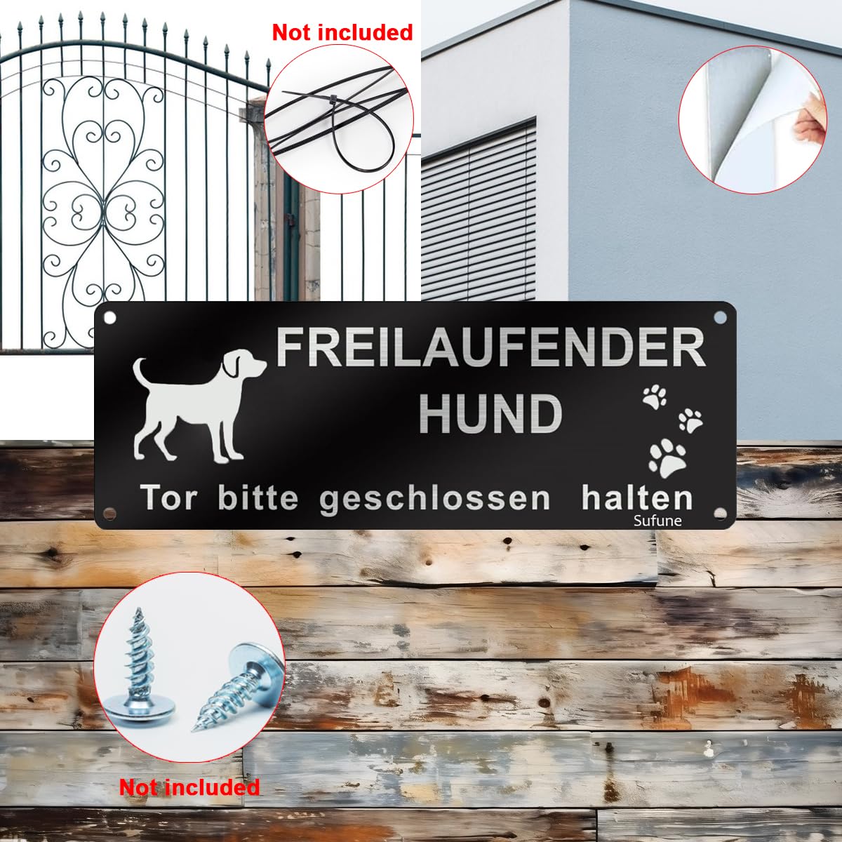 Schild Vorsicht Freilaufender Hund Tor Geschlossen Halten