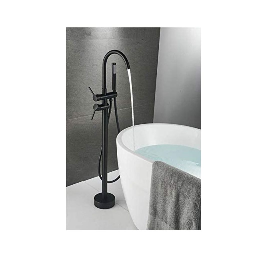 Freistehender Badewannenhahn, Bodenstehender Badewannenmischhahn Freistehender Badewannenmischhahn Aus Messing Mit Handbrause Rechtwinkliger Schwenkauslauf Mattschwarz 87264150