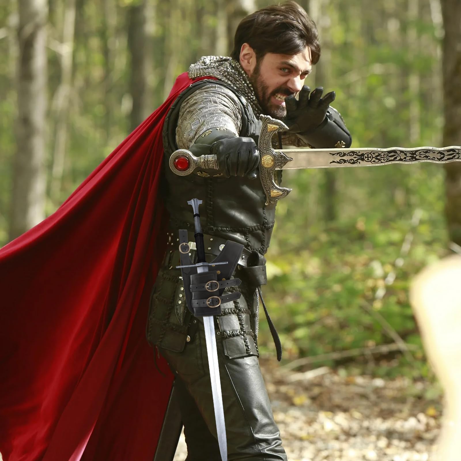ARSBORUI Mittelalterliche Retro Schwert Schulter Rücken Scheide Froschhalter, Verstellbare Krieger Kostüm Schutzhülle Schwert Leder Schnalle Holster Für Erwachsene Männer Schwerthalter