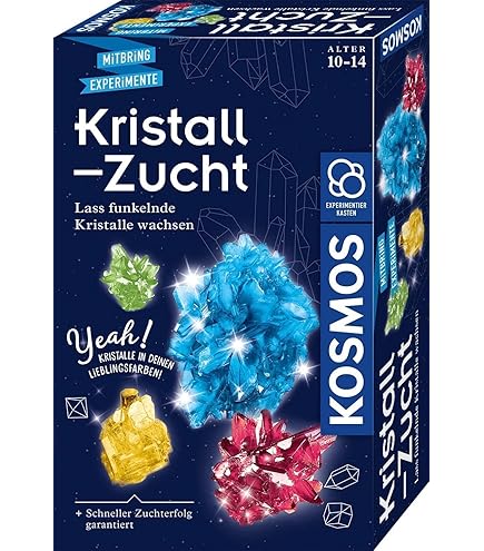 Mit anschaulichen Bildern erklärt das Anleitungsheft des Experimentierkastens, wie die Wunderwerke in verschiedenen Versuchen hergestellt werden und zeigt, wie man die Größe, Farben und Formen der wachsenden Kristalle beeinflussen kann oder sie ein einem Faden züchtet. KOSMOS Experimentierkasten Kristalle züchten | Kaufen auf Mit diesem Experimentierkasten können Kinder über Nacht oder in mehrtägigen Experimenten eine funkelnde Welt in noch intensiveren Farben erschaffen. Überraschungs-Kristalle züchten Aus Kristallsalz wird in diesem KOSMOS Experimentier-Set über Nacht ein funkelnder Kristall gezüchtet. 231-900-3); Färbepapier Rot; Färbepapier Blau; Färbepapier Grün; Deckelheber; Pinzette; Pipette; Spatel; Messbecher; Deckel Messbecher; Messbecher rot; Messbecher blau; Messbecher gelb; Deckel Messbecher; Gussform Druse und Becken; Gussform Figuren; SchatztruheZusätzlich wird benötigt: Destilliertes Wasser (etwa 1 Liter),selbstklebende Etiketten, Bleistift, Klebefilm, Küchenpapier, Topflappen, kleiner, ausrangierterKochtopf (20 cm Durchmesser) oder Wasserkocher, leere Marmeladen- oderHoniggläser mit Deckel (etwa 200 ml).Garn, bzw. Kosmos Experimente Ab 10 Jahre KOSMOS 654153 Fun Science - Geheimnisvolle Kristallwelt, Experimentierkasten Für Kinder, Kristalle Züchten, Riesige Einzelkristalle In Tollen Farben Experimente Für Kinder Ab 8 Komplette Ausstattung zum Züchten inkl. Kosmos Kristall-Zucht Mitbring-Experimente zum Selbermachen 278-377-8); Abfüllung Gips 200 g, (EG-Nr. kleiner Schmuckdose zum Aufbewahren und Präsentieren der Kristalle. Eine kreative und spannende Art, die MINT-Wissenschaft Chemie zu entdecken! Das Wunderwerk der Natur kann anschließend in einer kleinen Schmuckdose ausgestellt werden. Kinder von 10 bis 14 Jahren können ihre eigene funkelnde Welt erschaffen: Schillernde Einzelkristalle entstehen über Nacht, glitzernde Kristallhöhlen werden selbst hergestellt, Gipsfiguren können mit einer zauberhaften, kristallinen Hülle überzogen werden und als Highlight funkeln nachtleuchtende Kristalle in der kleinen Schatztruhe. 233-141-3)mit Strontiumaluminat (EG-Nr. Halte kleine Kinder und Tiere beim Experimentieren fern. Bewahre den Experimentierkasten außer Reichweite von Kindern unter 10 Jahren auf. Überraschungs-Kristalle selbst züchten Das könnte dir auch gefallen KOSMOS Experimentierkästen Bitsy - Dein cleverer Robo-Freund 64 99 € KOSMOS Experimentierkästen Finger-Abdrücke 11 99 € KOSMOS Der Clou: Beim Kauf weiß man noch nicht, welche Farbe entstehen wird, denn nur eine der drei Farben Violett, Türkis oder Orange liegen im Set. Nylonfaden, Schere, Alleskleber,Kochsalz,alte Zeitungen, leere Joghurtbecher (250 ml) Mit einer der drei Farben: Violett, Türkis oder Orange. Spannende Experimente erleben – funkelnde Kristalle in einer Überraschungsfarbe selber züchten. KOSMOS Experimentierkasten für Kinder ab 10 Jahren.