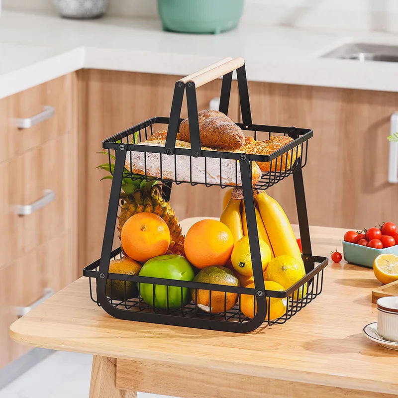 Funien 2 Etagen Obstkorb Camping Metalldraht Obstkorb Aufbewahrungshalter Gemüse Snacks Ständer Für Outdoor Camping BBQ Picknicks