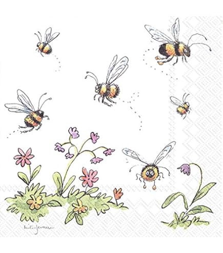 Ambiente Papierserviette Gänseblümchen Und Bienen, (20 St), 33 Cm X 33 Cm