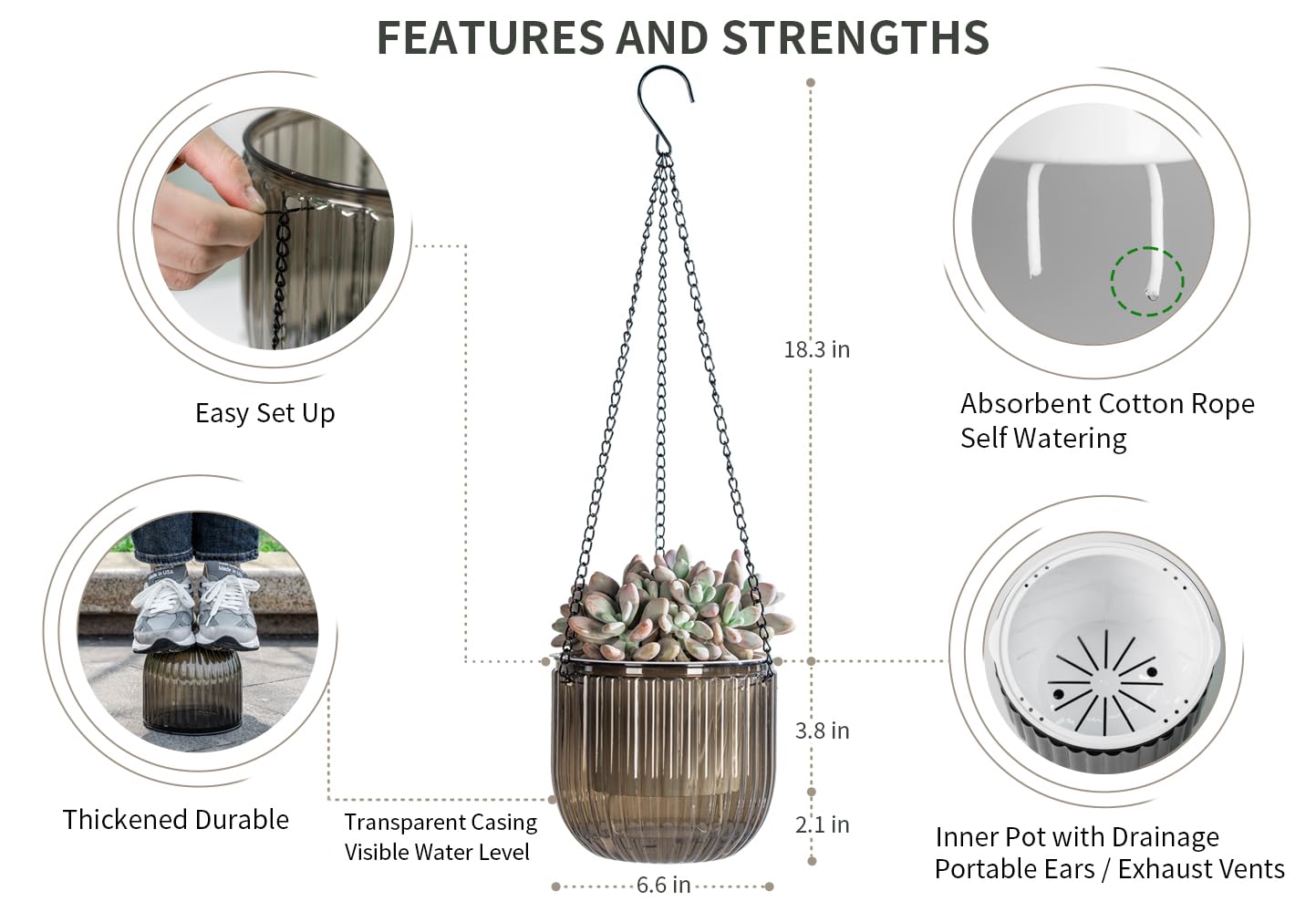 Der äußere Topfboden wie ein Wasserspeicher ermöglicht es Ihnen, zusätzliches Wasser hinzuzufügen, um Ihnen mehr Zeit zwischen den Bewässerungen für mindestens ein paar Wochen zu bieten. Kann auch der Sonne, harten Winter ausgesetzt werden und sie werden nicht verblassen oder reißen. Hochwertige Materialien: Langlebige Beschichtung, dicke Ketten zum Aufhängen können helfen, Rost für den Außenbereich zu vermeiden. 11,4 cm 2 Stück selbstwässernder hängender Übertopf für den Innenbereich, Hängetöpfe mit Drainagelöchern, kleine hängende Pflanzgefäße, Blumentopfkorb, sichtbarer Wasserstand, Pflanzenaufhänger, Heimdekoration, Gartenarbeit Geringes Gewicht und anständig robust können aufgrund des verdickten hochdichten PET-Rohstoffs nebeneinander existieren. Einfach für Sie zu sehen, wie viel Wasser sich im hängenden Blumentopf befindet. GUDATOST 25,4 cm selbstbewässernde Blumentöpfe, 2 Stück, große Kunststoff-Pflanzgefäße mit Josteve Selbstbewässernder Pflanztopf für den Innenbereich, 13 cm, 2 Stück, mit Drainagelöchern, Hängepflanzgefäße für den Außenbereich, Blumentopfkorb, sichtbarer Wasserstand, Pflanzenaufhänger von Josteve. Vasen & Übertöpfe günstig online kaufen bei Möbel & Garten Sensor Thea Energie tanken hänge bluentopf weiß anga Ufergegend Anhänger Klar wie Glas: Hochwertige transparente PET-Materialien machen unseren Kunststoff-Hängetopf für Pflanzen so klar wie Glas. Perfekt, um das Problem zu verhindern, dass Pflanzen im Wasser zu viel ertrinken, wiederum wird der Wasserspeicher durch das Dochtseil aufgesaugt, um Pflanzen zu füttern. Einfach für Sie zu sehen, wie viel Wasser in dem hängenden Blumentopf ist. [Hängende selbstbewässernde Pflanzgefäße] Die Hängekörbe für Zimmerpflanzen werden mit 48 cm langen Ketten und Baumwollschnurdochtseilen geliefert. Übertragen und saugen Sie Wasser vom Außentopf in den Innentopf auf, um gleichmäßige Feuchtigkeit zu erhalten Hängende selbstbewässernde Pflanzgefäße: Die Hängekörbe für Zimmerpflanzen werden mit 41,9 cm langen Ketten und Baumwollschnur-Dochten geliefert. 【Klarer Wasserstandsanzeiger】 Hochwertige transparente PET-Materialien machen unseren Kunststoff-Hängetopf für Pflanzen so klar wie Glas.