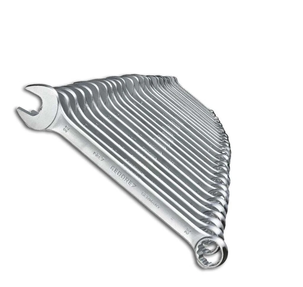 GEDORE QUALITÄT SEIT ÜBER 100 JAHREN: Das Sortiment mit über 17.000 Werkzeugen übertrifft Industrie-Ansprüche; Nutzen Sie als Profi Hammer, Zange oder ganze Werkzeugkoffer für ein sicheres Arbeiten LIEFERUMFANG: 1 x GEDORE Maulschlüssel-Satz mit Ringratsche 12 teilig, 8-19 mm, Länge: 610 mm, Gewicht: 2840 g, Artikelnummer Der Schlüssel startet mit aktiver Arbeitsleistung schon da, wo sich andere noch im Leerlauf befinden. Sehr hohe Drehmomentübertragung, die DIN Forderungen werden übertroffen. Hierbei wurde ein verbesserter praxisorientierter Arbeitswinkel zwischen 5° und 7° realisiert. Ratschendes Lösen oder Schnellanzug mit der Ringknarre, in einem Zug ohne Nachsetzen. Das Maul ist exakt auf Schlüsselweite geschliffen. Feine Verzahnung und eine geringe Bauhöhe machen den Ratschenschlüssel 7 R auch dort zum unentbehrlichen Helfer, wo die normale Knarre zu groß oder unhandlich ist. Der Ringratschenkopf der Schlüsselknarre ist mit dem bewährten GEDORE UD-Profil als Antriebsprofil ausgestattet. Gedore Ratschenschlüssel Bei Gedore Maulschlüssel Mit Ringratsche GEDORE Maulschlüssel mit Ringratsche, Type 7 R 32 jetzt im Onlineshop bestellen! Profitieren Sie von unserer schnellen und zuverlässigen Lieferung Die Mechanik der neuen Schlüsselknarren wurde aus der bewährten Mechanik der GEDORE U-20 Knarren abgeleitet und weiterentwickelt.