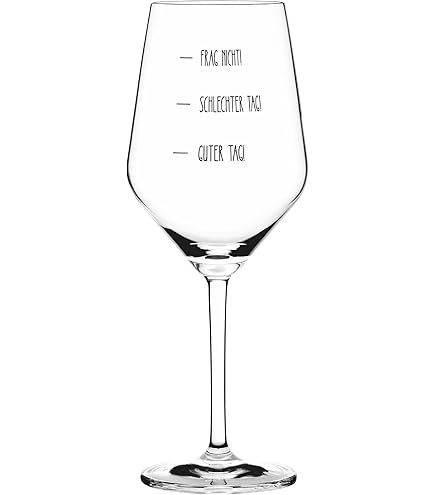 Weinglas Lustig Weinglas GLASS OF MOODS - Stimmungs-Weinglas - Rotweinglas Weinglas Xxl XL Wie war Dein Tag-Weinglas (1x 550l Glas) von Schott Zwiesel | ade in Gerany | Guter Tag... Die außergewöhnlichen Kollektionen sind gemacht für alle designbewussten und offenen Menschen Das witzige Weinglas mit dem aufgedruckten Stimmungsbarometer hat drei Messskalen Good Day, Bad Day, Don't Ask Das Weinglas mit Stimmungs-Skala von Donkey Products bringt Spaß daheim und bei jedem Zusammensein und erfreut bei vielen anderen Gelegenheiten!♥ Donkey Glass of Moods 25 x 9 cm Reinigen lässt sich das originelle Glas aus hochwertigem Glas einfach und schnell von Hand Besonders gut als Geschenk zum Lieblingswein lässt sich die Tasse gut zum Geburtstag oder zu Weihnachten verschenken